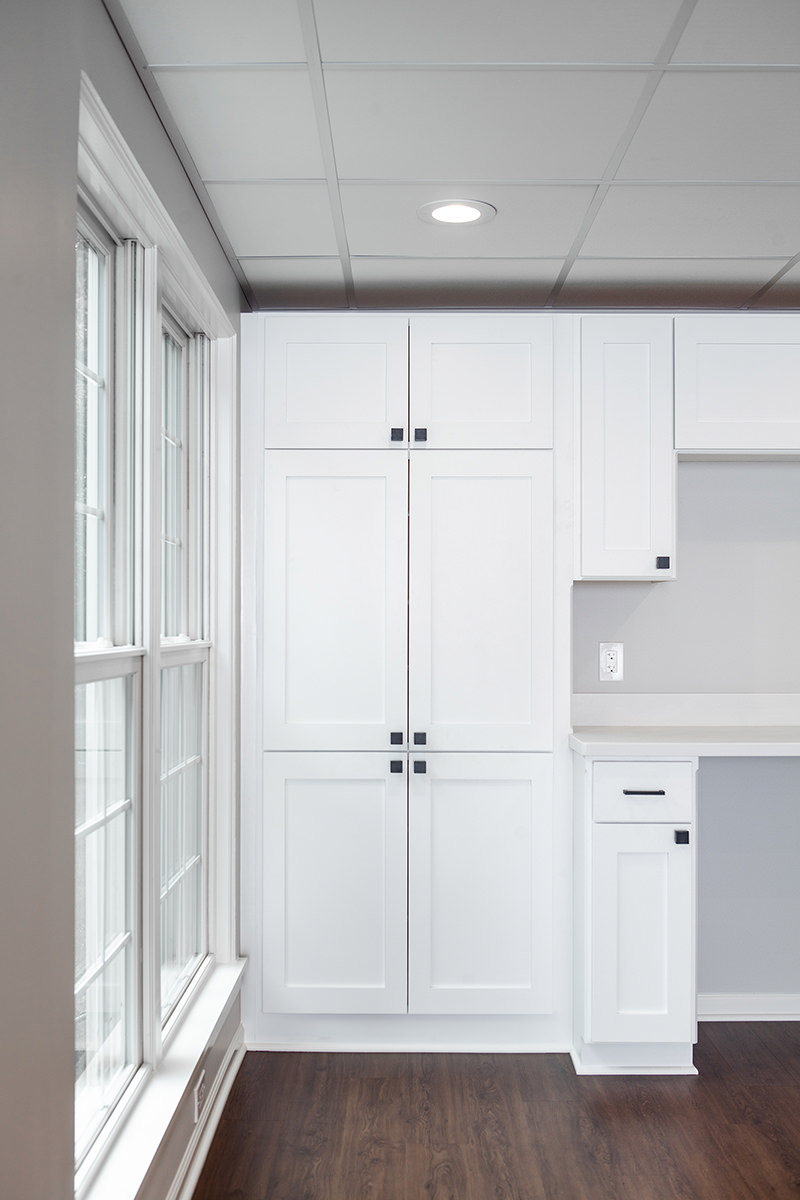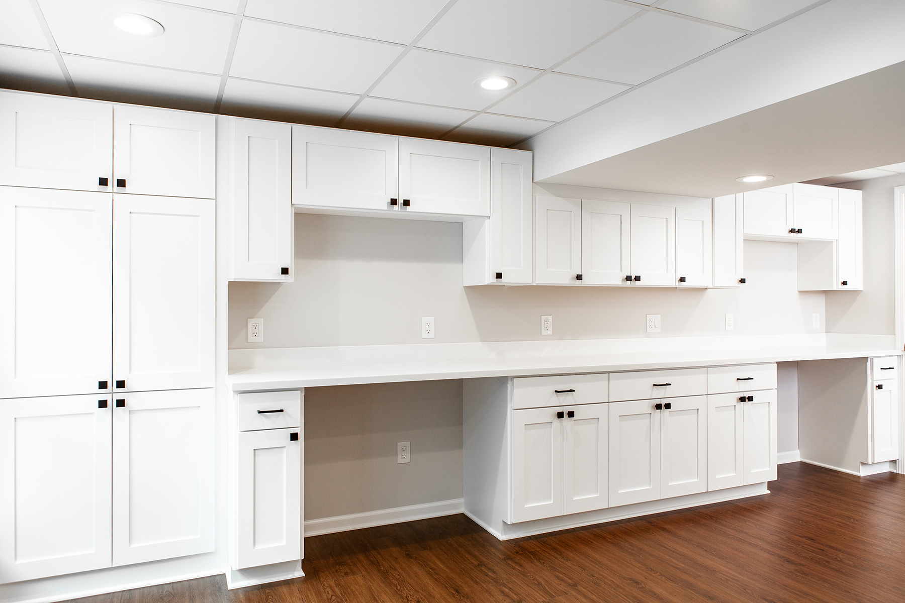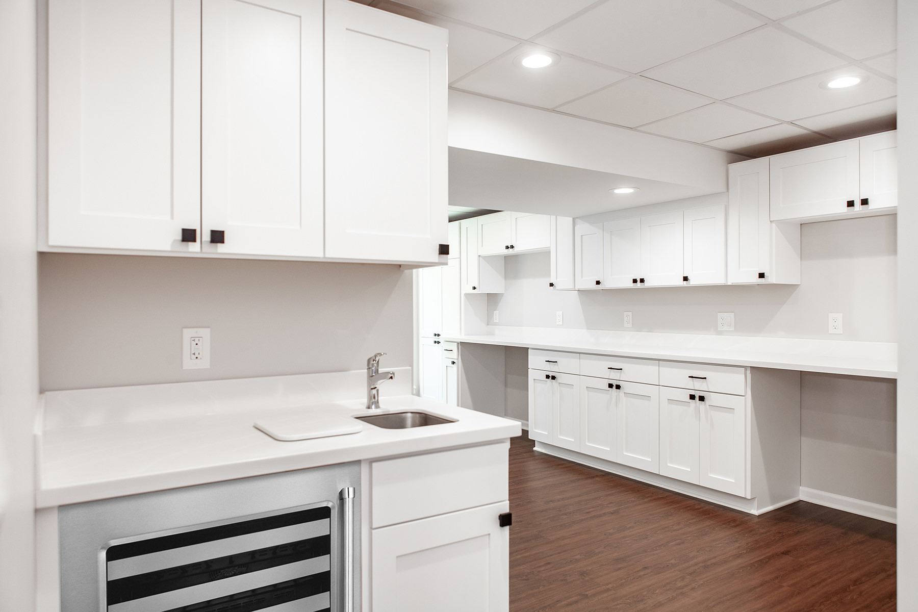 Oftentimes once you move into a home there may be some hidden "adventures" that may not have been obvious when you fell in love with your new place. Our Lake Bluff homeowners inherited a rodent issue making their new basement unusable. With the help of our BDS team, we were able to not only give them a great space to use, but also add much needed extra storage and a custom craft space work station for two. We were also able to make a few upgrades to make this basement just what our homeowners were looking for such as new lighting, fresh insulation, and a mini fridge/sink station. Durable flooring including up the stairs was added to handle all the foot traffic. We also updated the full bathroom to create a great usable space for the homeowners and their guests.