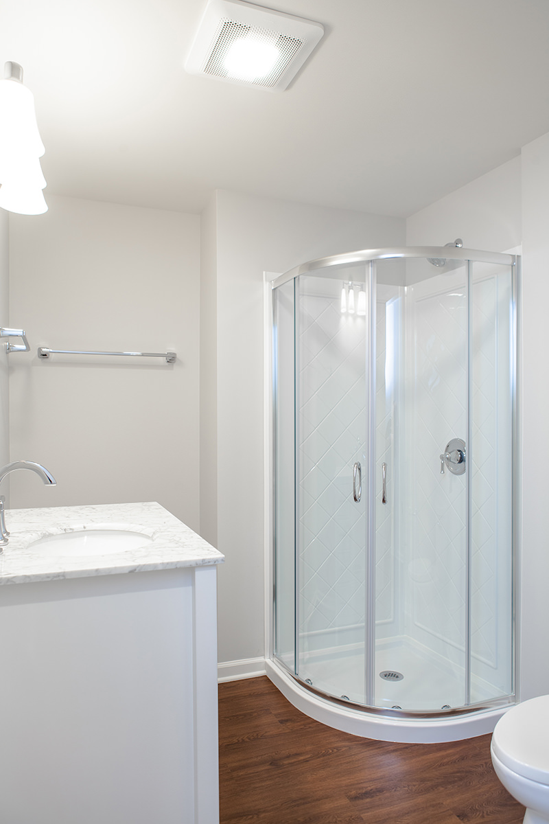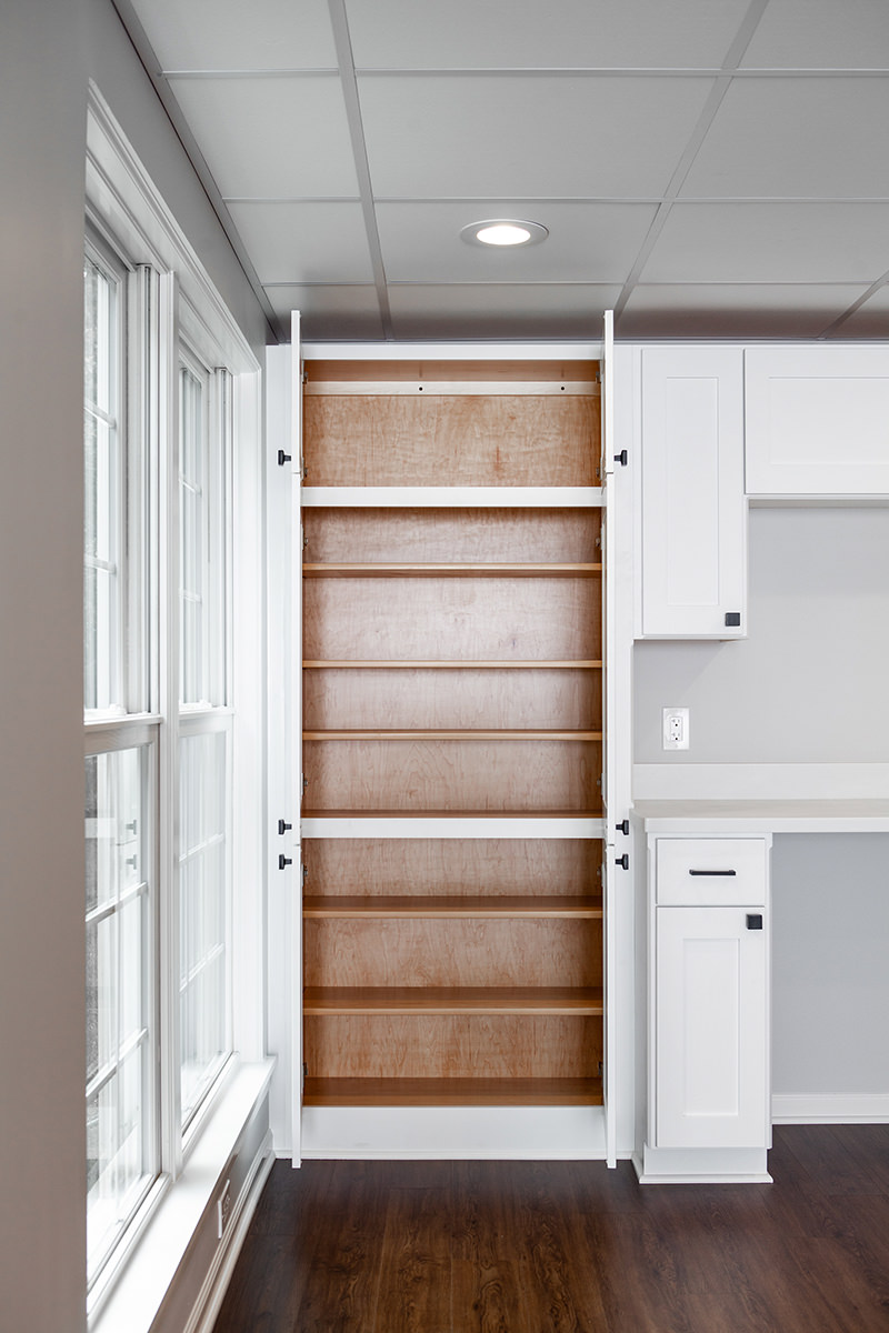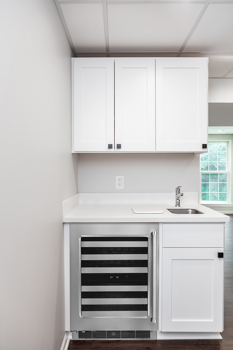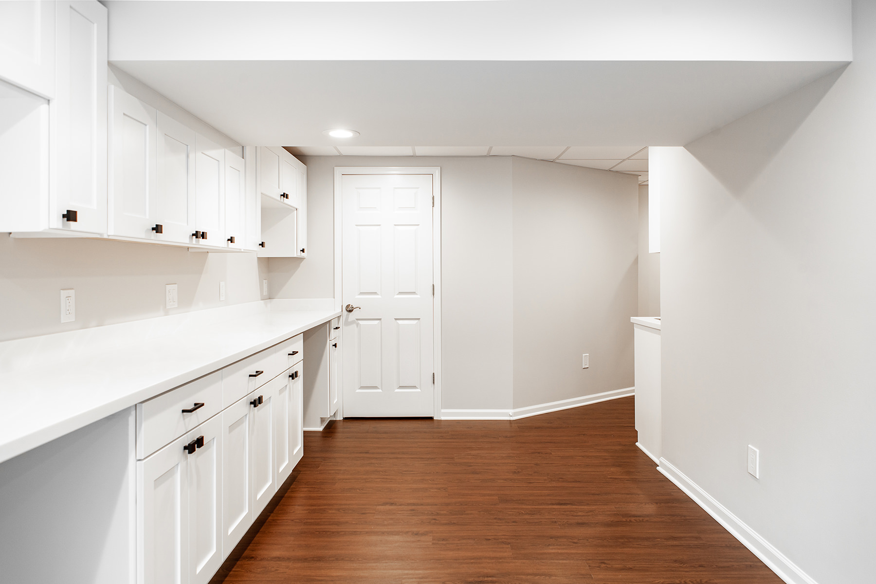 Oftentimes once you move into a home there may be some hidden "adventures" that may not have been obvious when you fell in love with your new place. Our Lake Bluff homeowners inherited a rodent issue making their new basement unusable. With the help of our BDS team, we were able to not only give them a great space to use, but also add much needed extra storage and a custom craft space work station for two. We were also able to make a few upgrades to make this basement just what our homeowners were looking for such as new lighting, fresh insulation, and a mini fridge/sink station. Durable flooring including up the stairs was added to handle all the foot traffic. We also updated the full bathroom to create a great usable space for the homeowners and their guests.