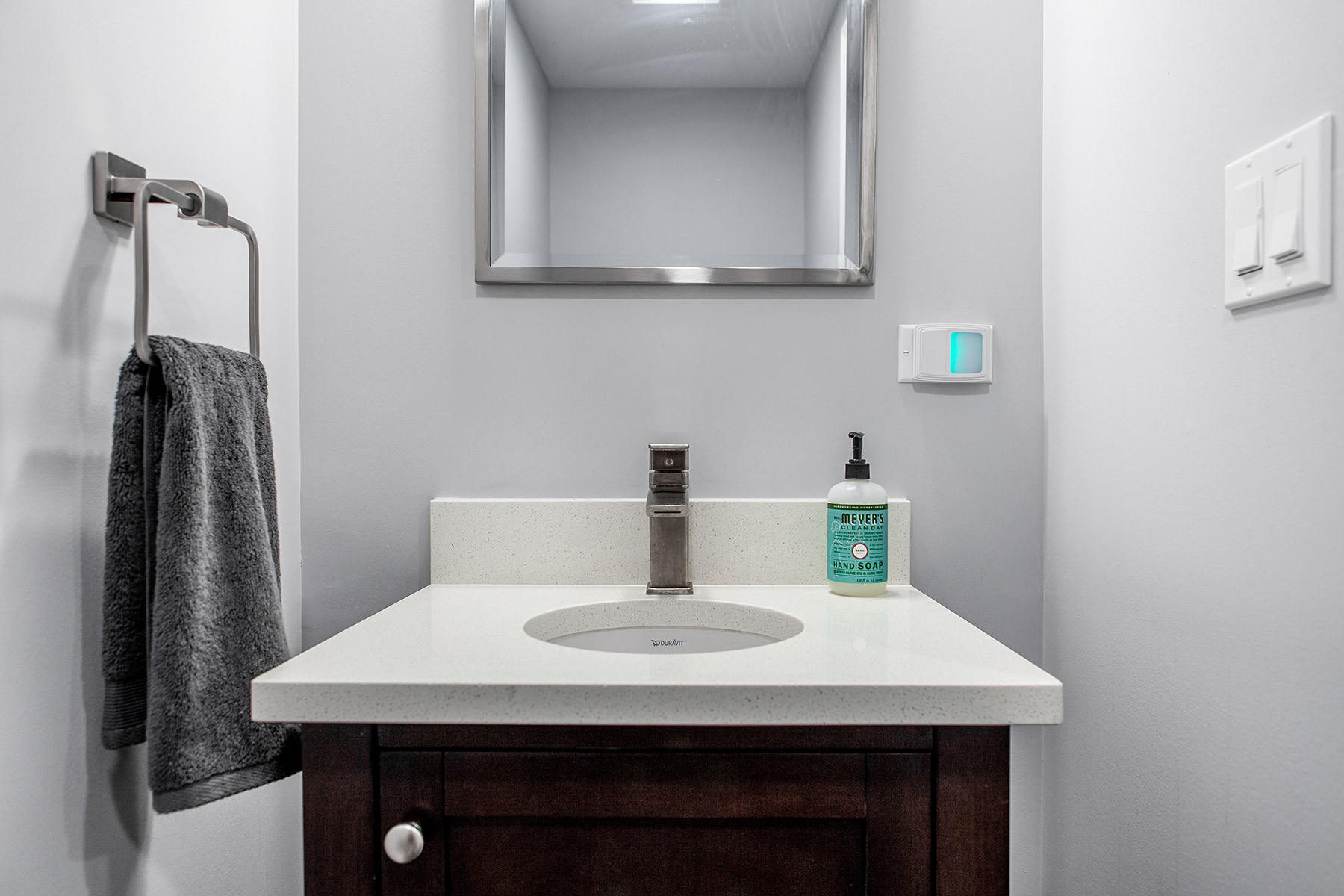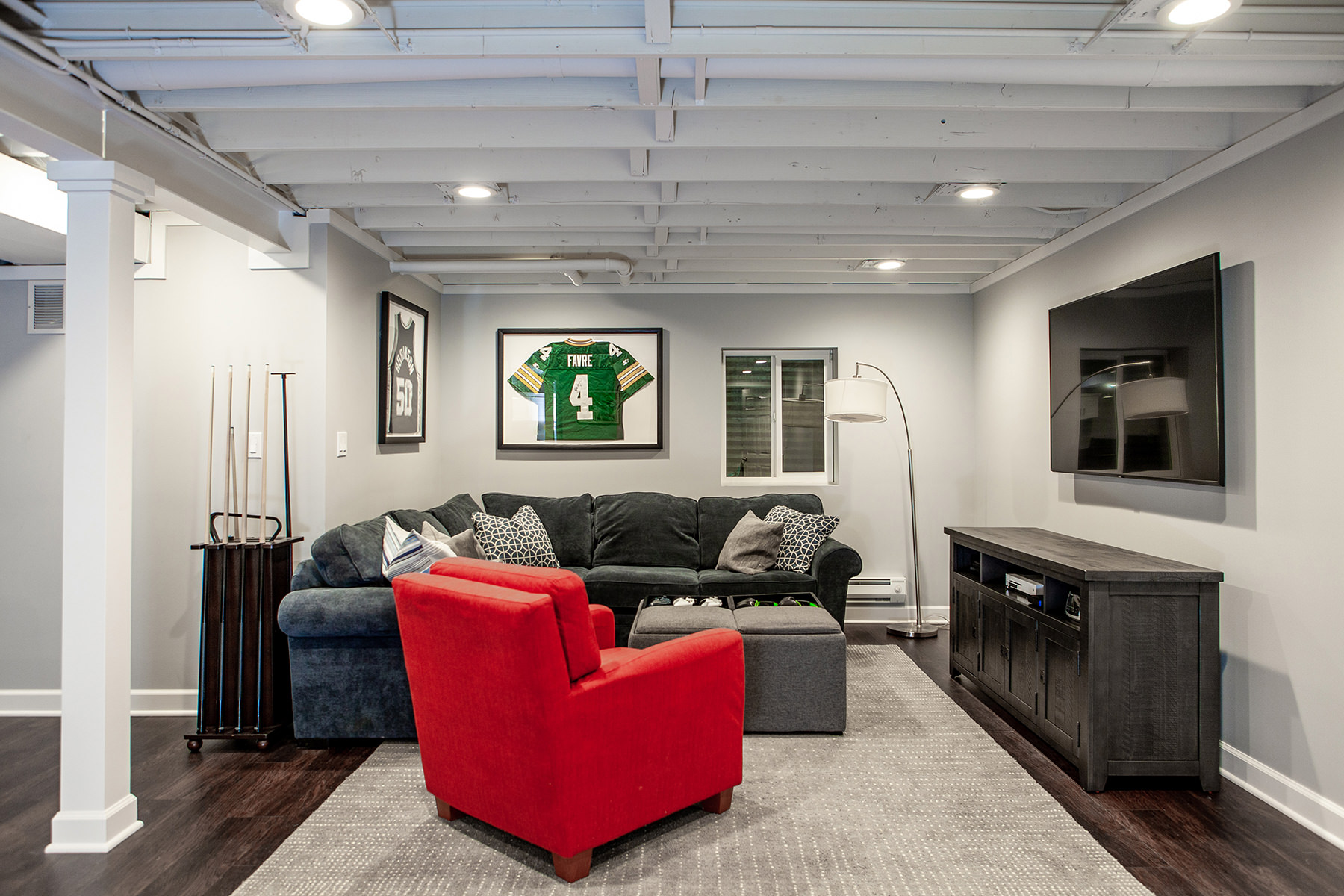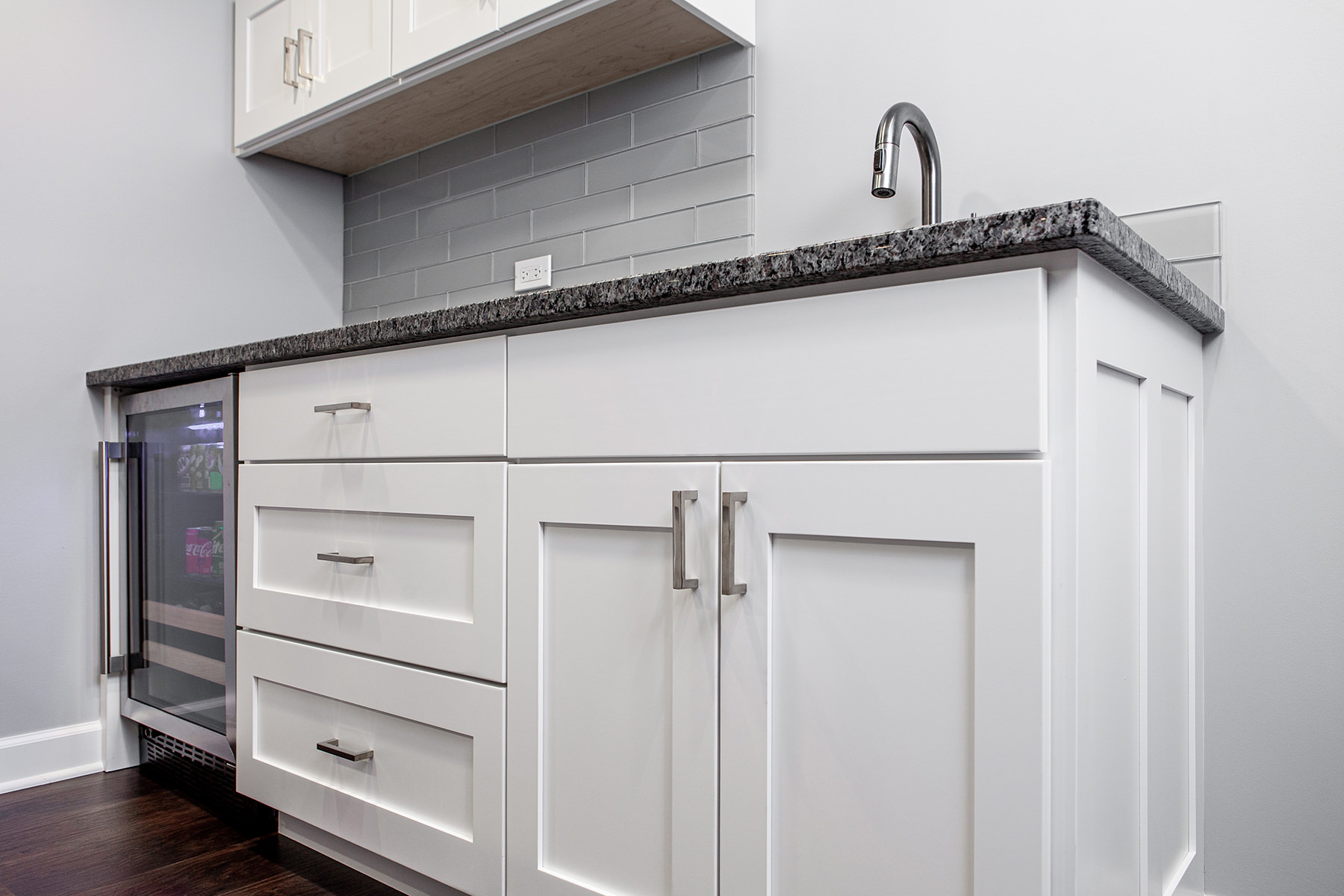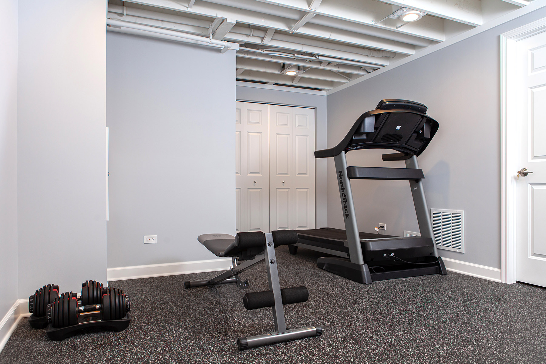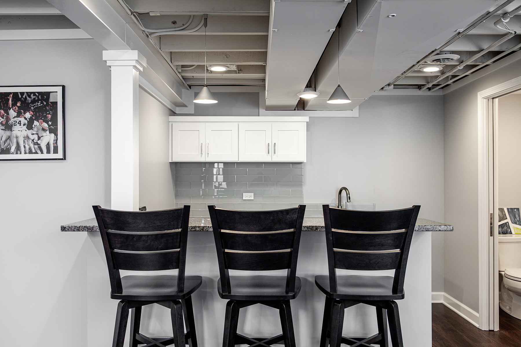 Basement spaces can be one of the best areas to add much needed family room. It is a great usable space and creates an area away from the main portion of the house for all those loud movies to be watched and late night card games. Our BDS crew was able to reimagine this basement space for our Libertyville homeowners. We created a great room to host guests and family time. A fantastic new wet bar was added to overlook a large TV viewing area. A powder room was added to make this basement a place you can spend hours hanging out in. We were also able to add a dedicated exercise area for the homeowners. Additional heating was added as well as new lighting and finishes throughout the entire basement. The team also opened up the stairwell to help this basement space feel more open and inviting.