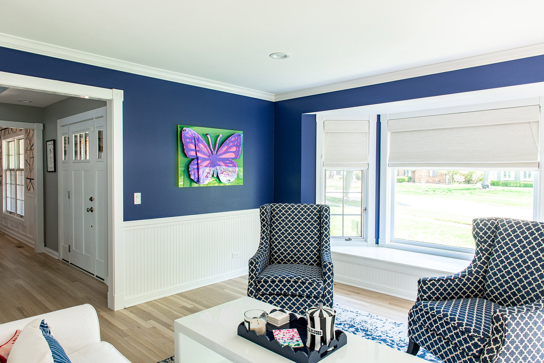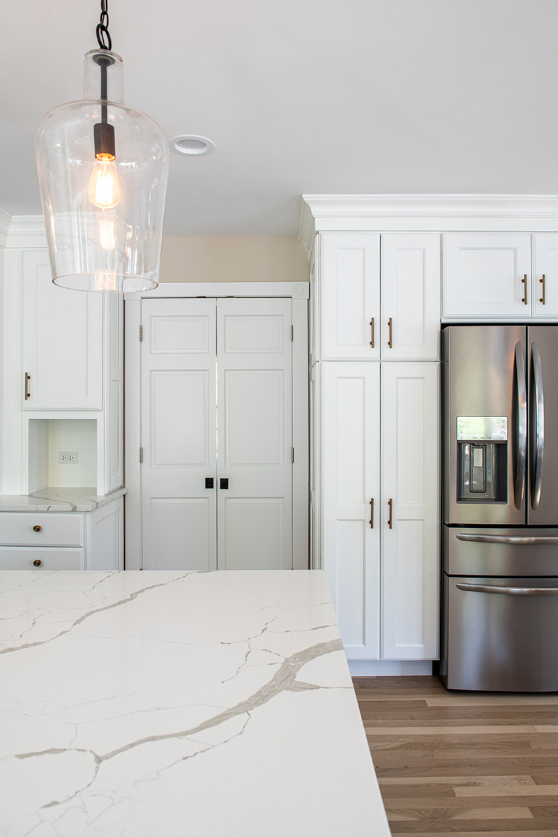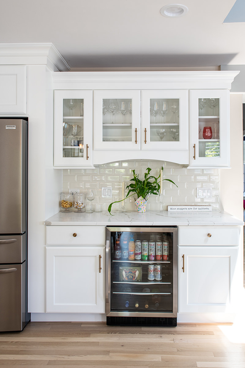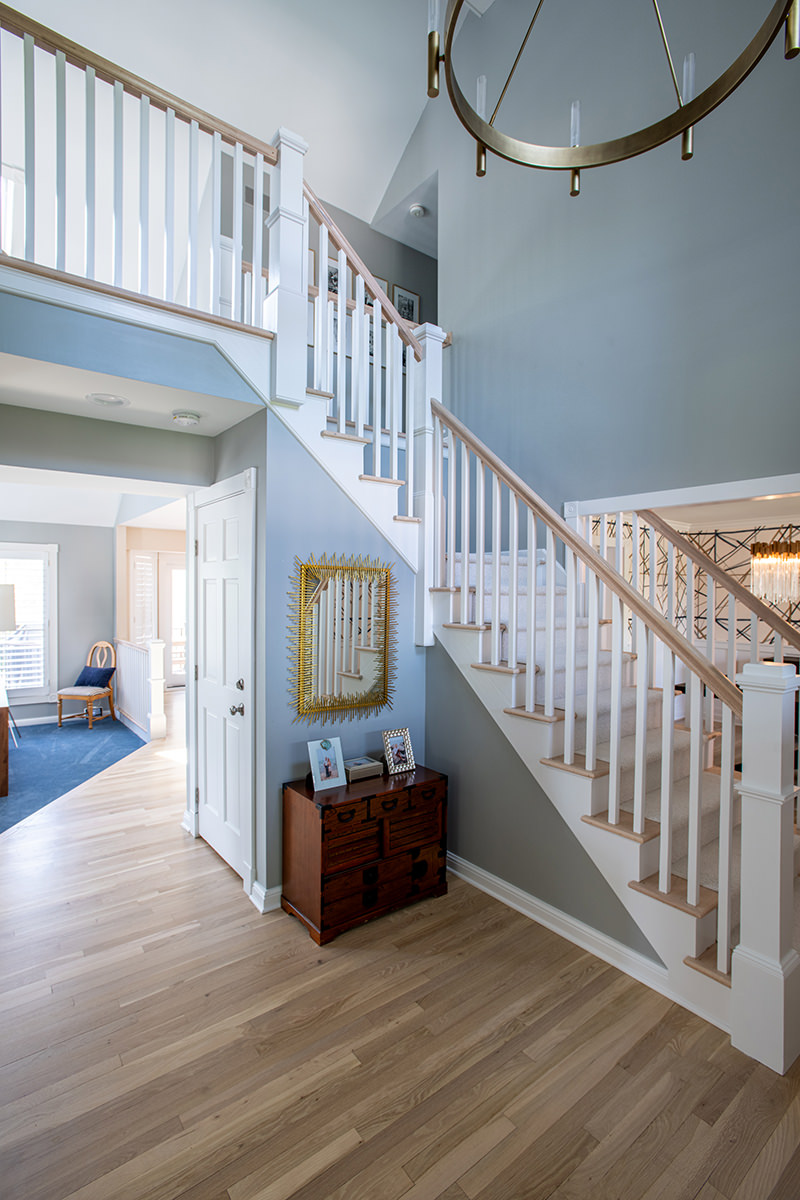 We love when we get to work with our homeowners on multiple projects. This Libertyville remodel was a recently purchased home that didn't align with their desired style, so they requested an interior refresh to make it truly feel like their own. The outdated fireplace room needed the most attention. We added paneling to the fireplace, giving it a fresh and modern look. In addition, we cleverly hid some wiring for the TV within a new custom mantel. The BDS team enhanced the overall aesthetics and functionality of the home by refinishing all the floors and replaced/updated all the stair railings throughout. This brought a sense of elegance and cohesiveness to the entire house. We transformed the kitchen by installing new countertops, a stunning backsplash tile, and fresh paint. In the dining room, our team focused on creating a warm and inviting atmosphere. We installed a new light fixture, added wainscoting for an elegant touch, and incorporated stylish wallpaper. Additionally, we modified the doors for better functionality and improved access from the kitchen, optimizing the flow between the two spaces.