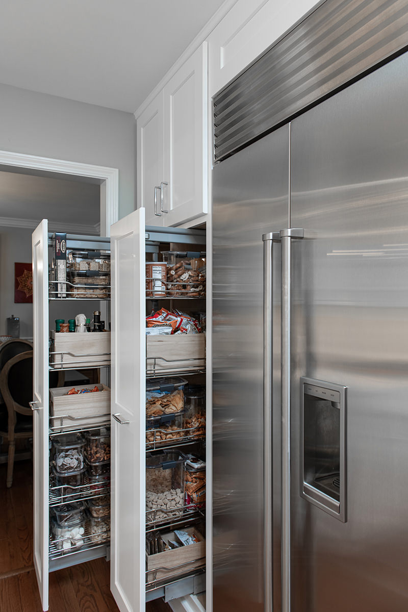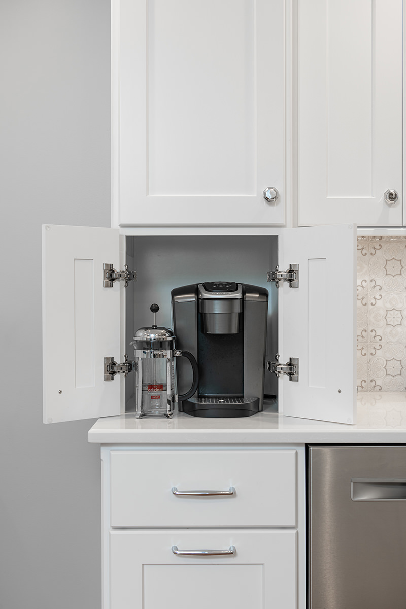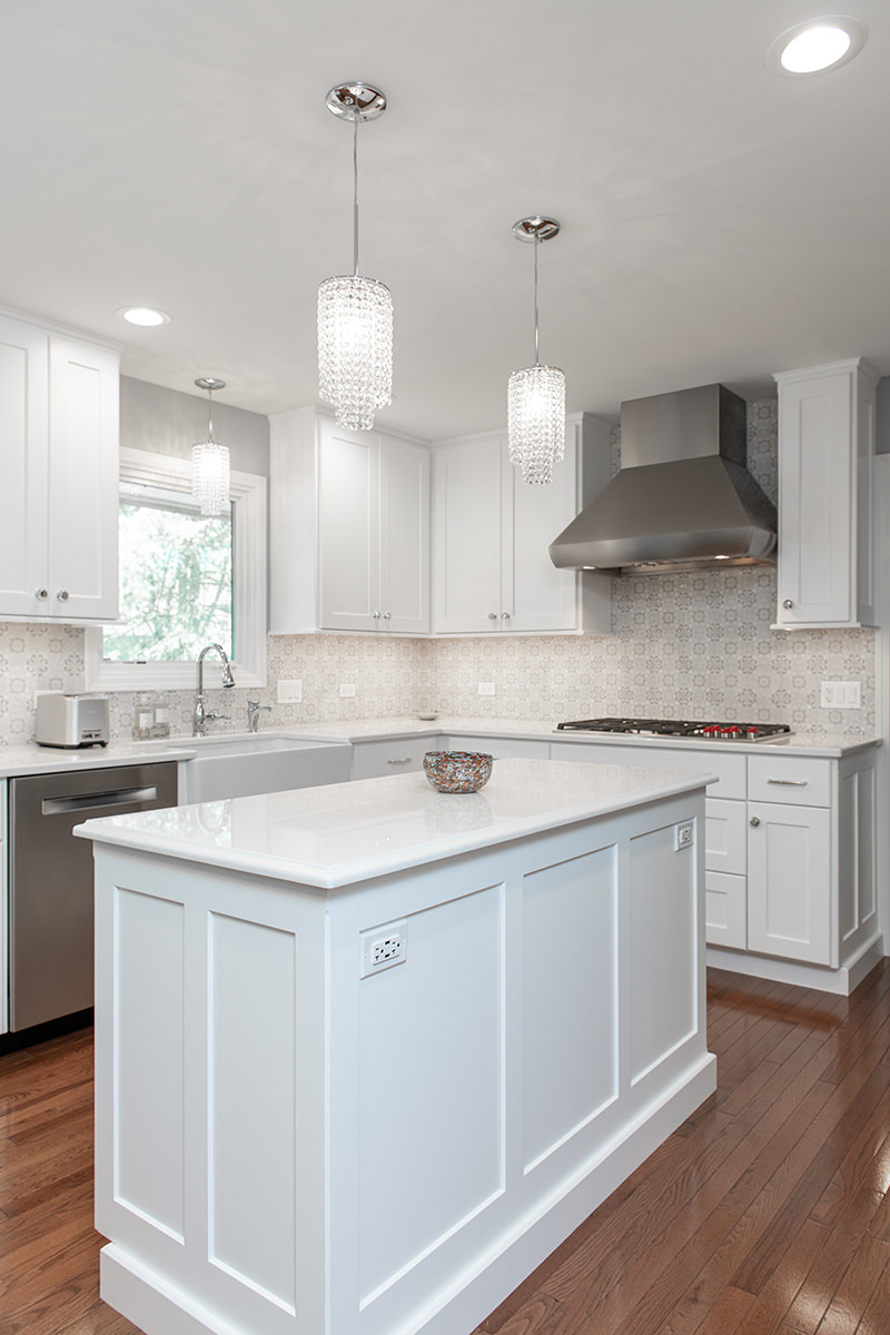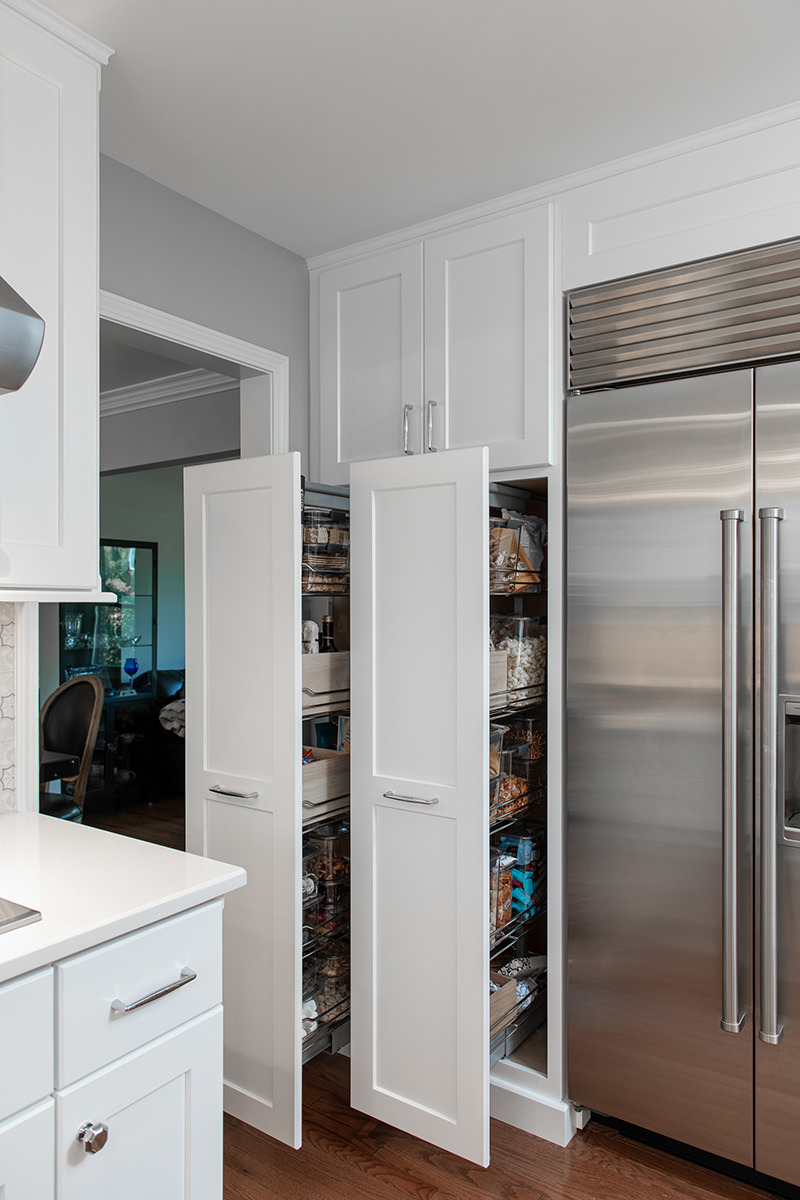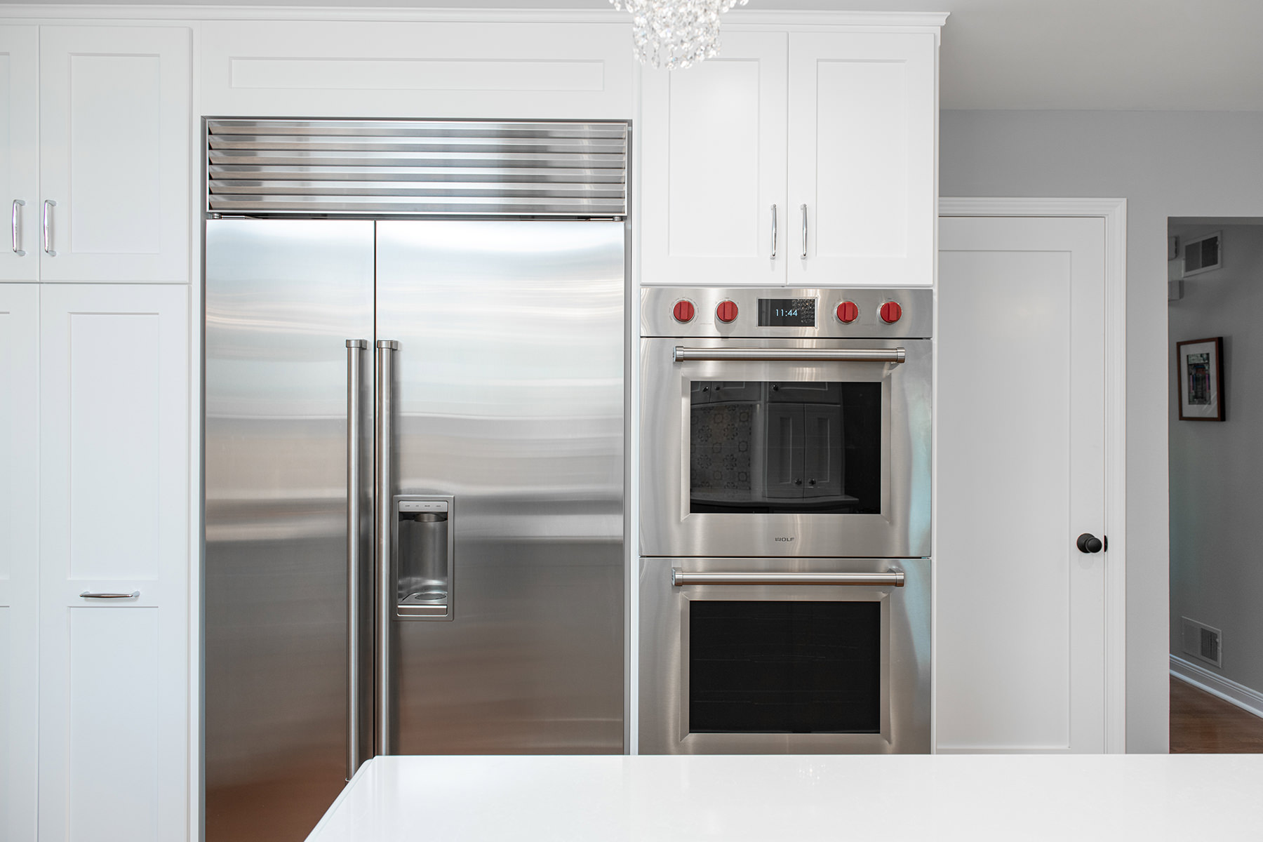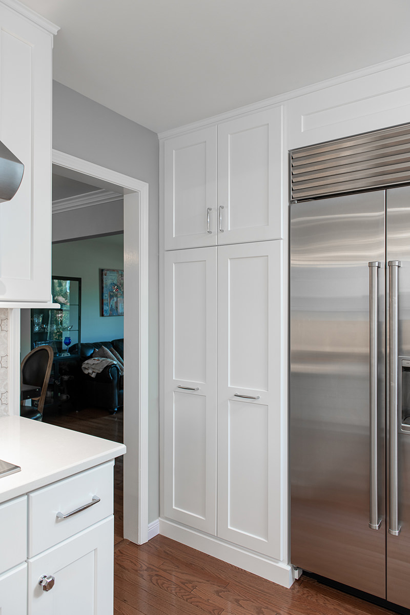 This Highland Park kitchen and laundry room project was a complete gut and remodel. Our homeowners were dealing with an outdated style as well as an inefficient work triangle and failing appliances. Our BDS team was able to come in and help our homeowners reconfigure this work space in the kitchen and the layout in the laundry room to optimize the space in the home. Bright white cabinets in both the laundry room and kitchen help create a classic and clean look for this remodel. Ample storage in both spaces offer plenty of room for appliances to be tucked nicely away. A gorgeous eat-in table was designed with a stunning blue bench seat that provides comfort as well as a pop of color for this neutral space. Stunning new lighting adds just the right amount of glamour to this beautiful remodel.
