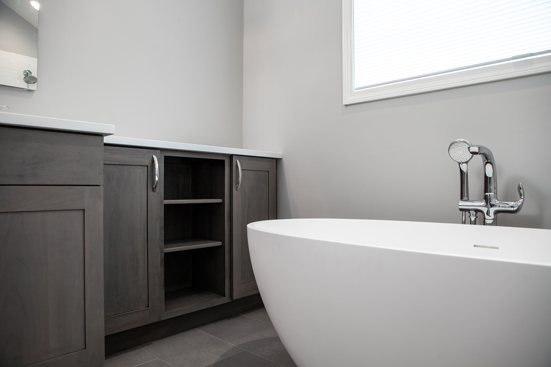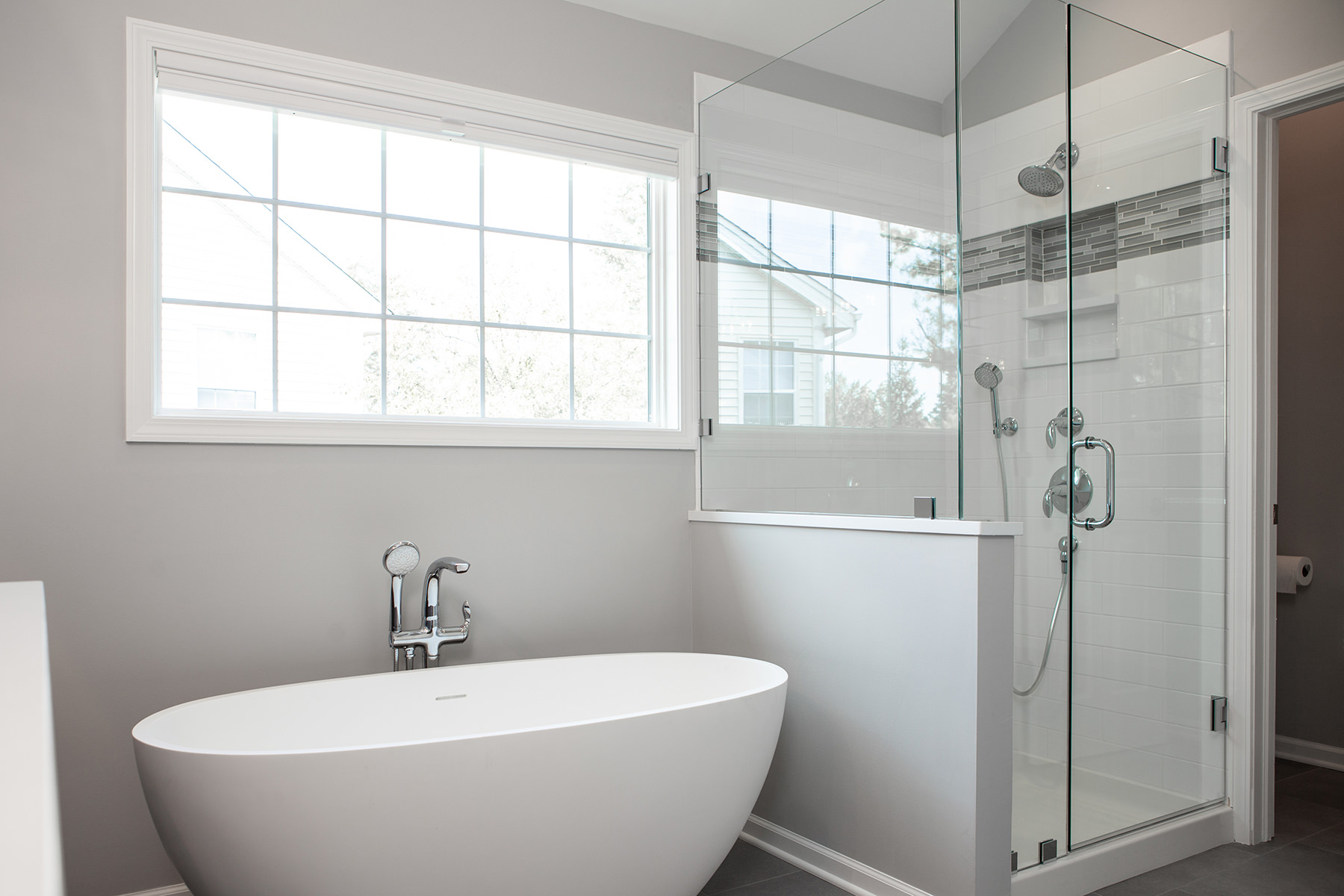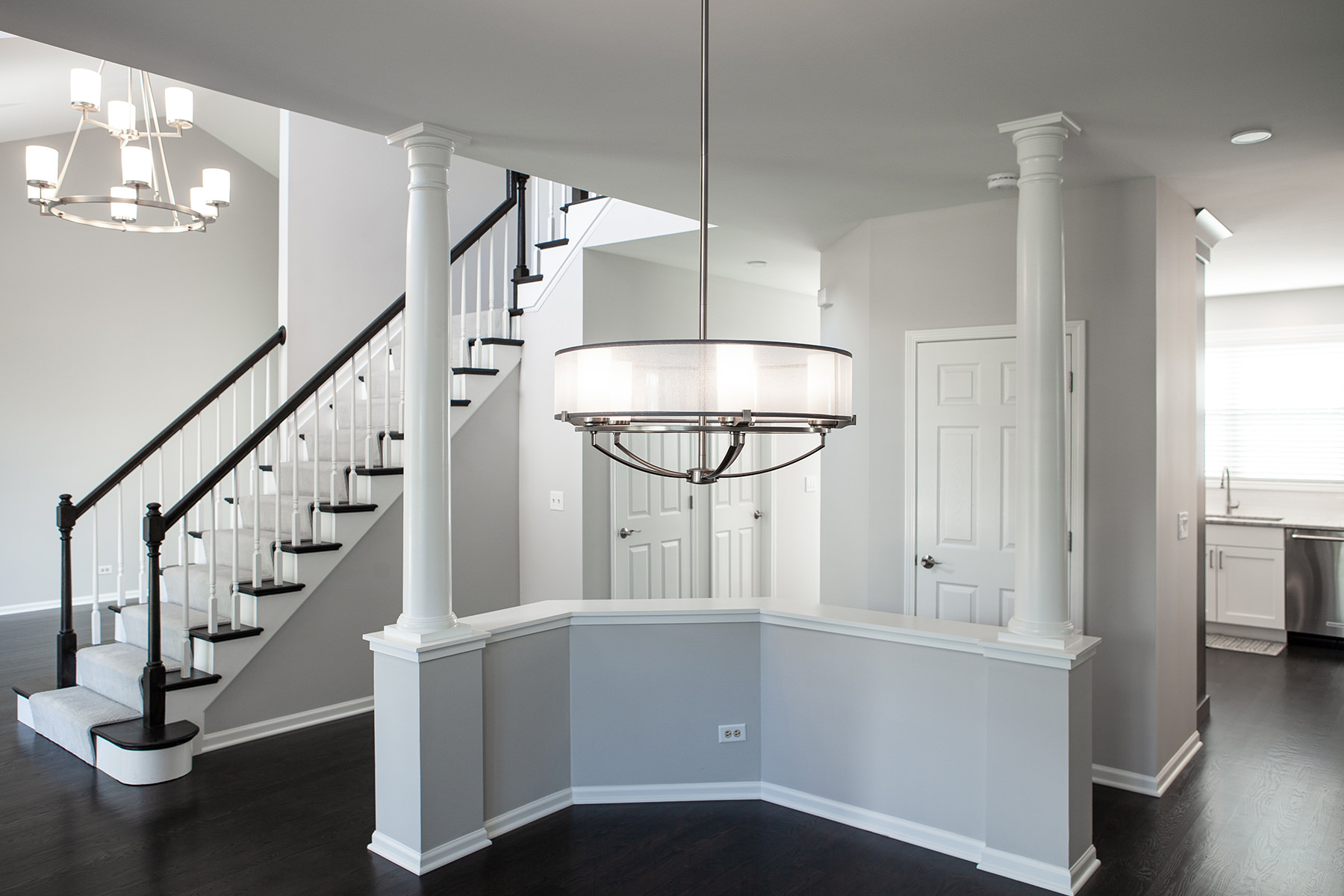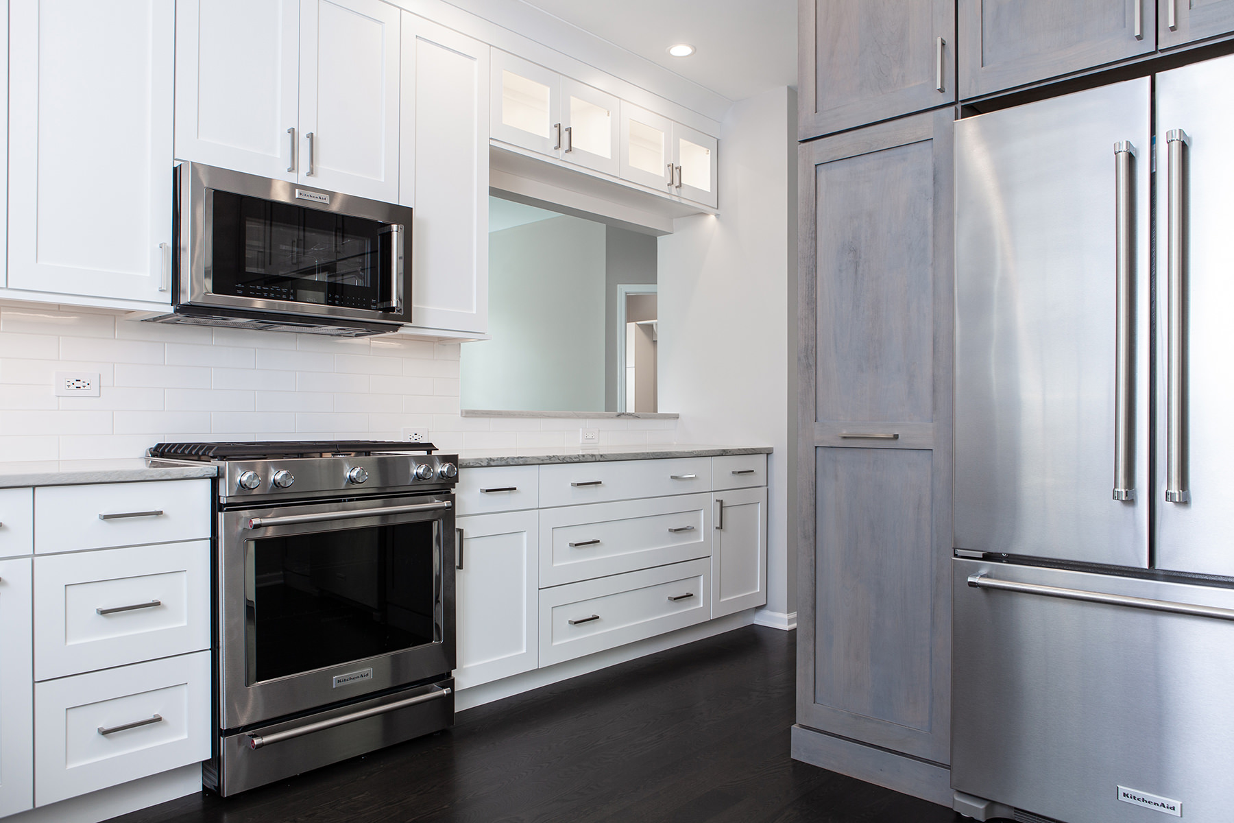 Our BDS team had the pleasure of working on the Lake Zurich project not once but twice! Our first project involved a master bathroom and kitchen remodel, and our second time to work with this client was for a fireplace, basement, and hall bathroom remodel! The goal for the kitchen design was to create a gorgeous, functional and organized space with semi custom cabinets, new quartzite countertops, and update the lighting, hardware, and appliances. For the primary bathroom we opened up the space to allow for a light to flow through with a glass shower and added a freestanding tub. Updates were made to the cabinets, lighting, hardware, and ventilation.