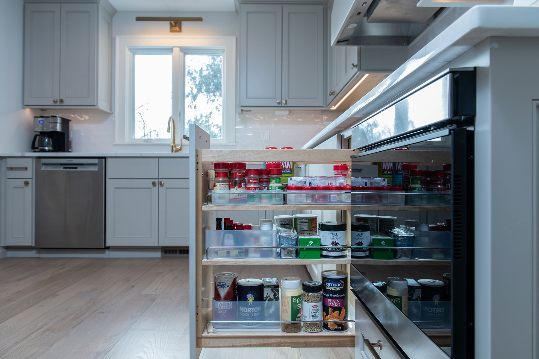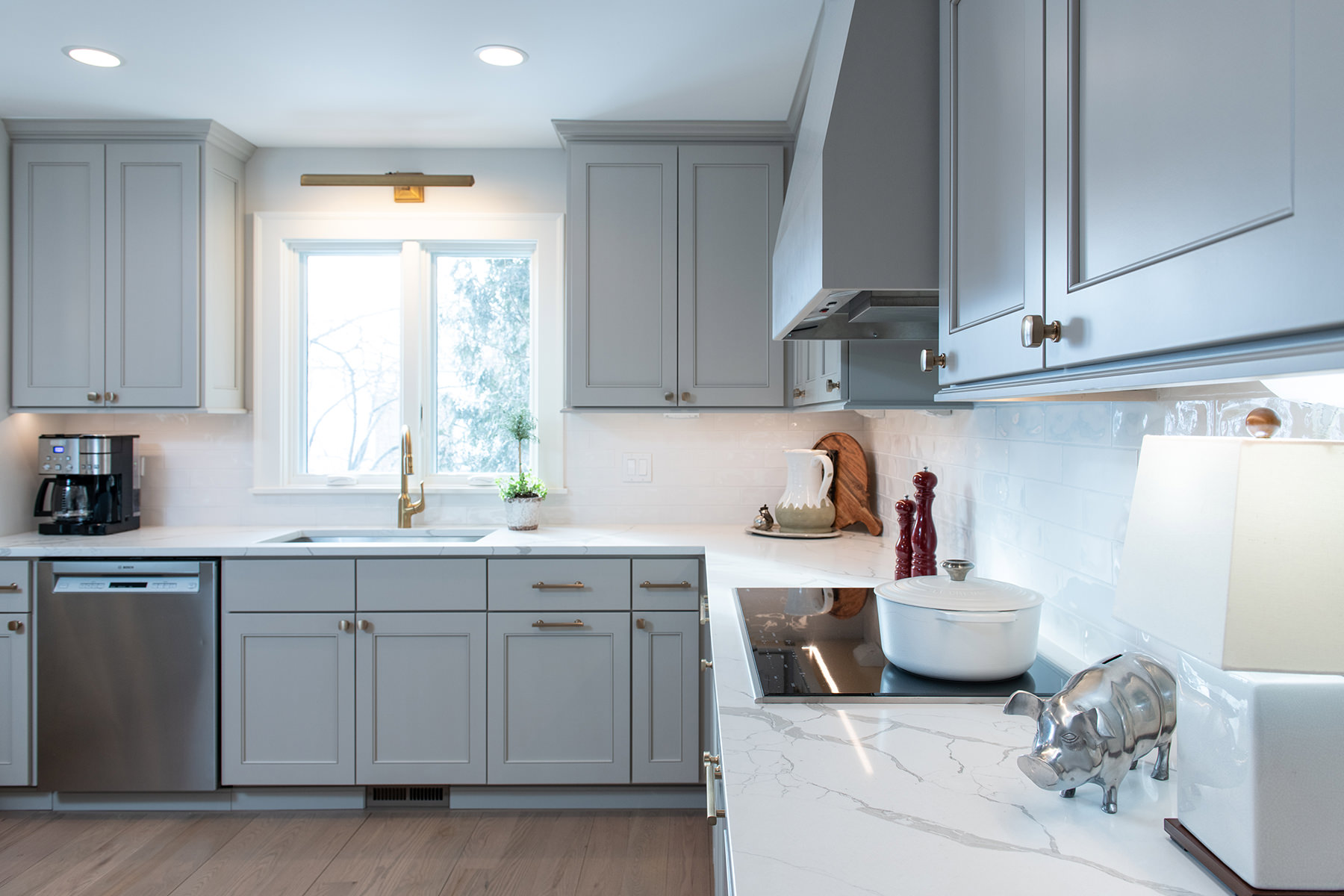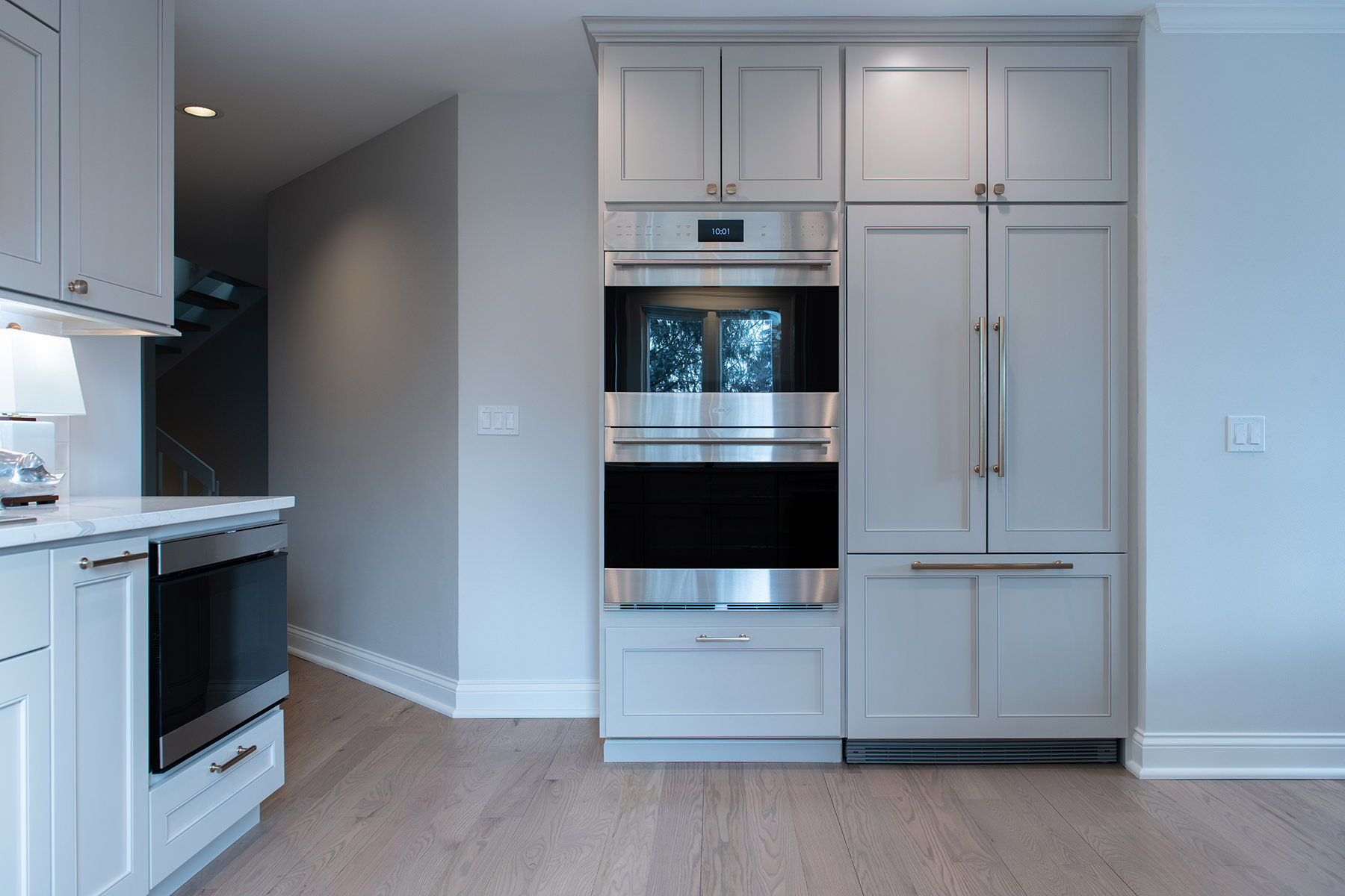 Our homeowner recently downsized into a modern Libertyville condo, and needed to bring the style and functionality up to what they really need and want. The team at BDS rearranged the work space creating an open functional space that allows for better entertaining and cooking space. Our homeowner chose high end appliances, double ovens, and an induction cooktop to make this a chef and entertainer's ideal kitchen. The design team also wanted to brighten up this space not only with the color palette, but with new windows and gorgeous lighting. The flooring and stairs were also completely refinished to complete this timeless gorgeous space.