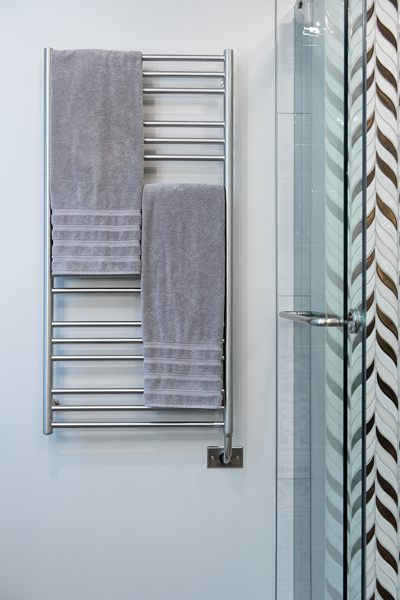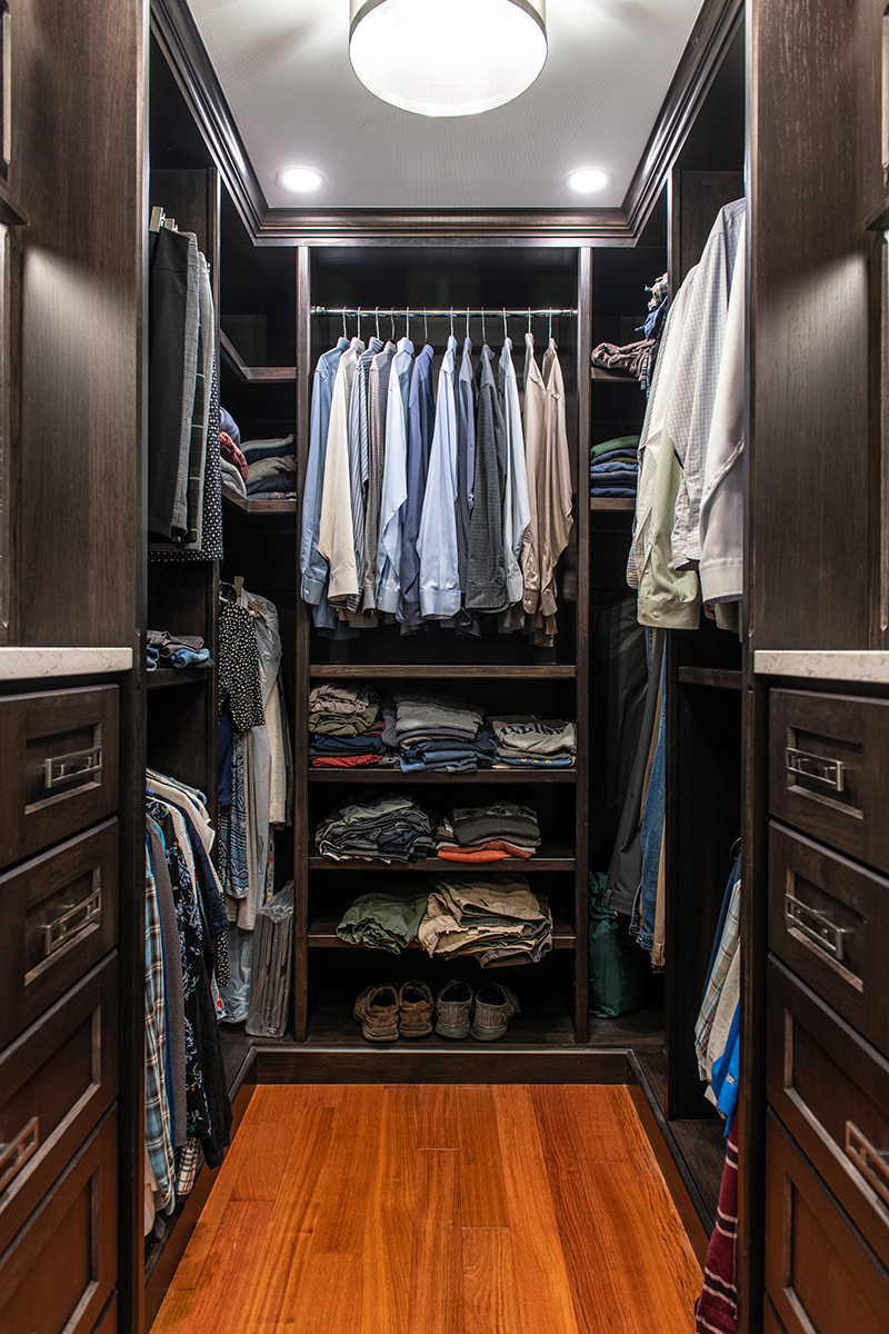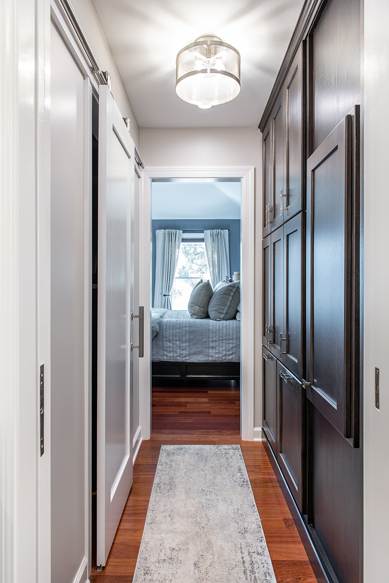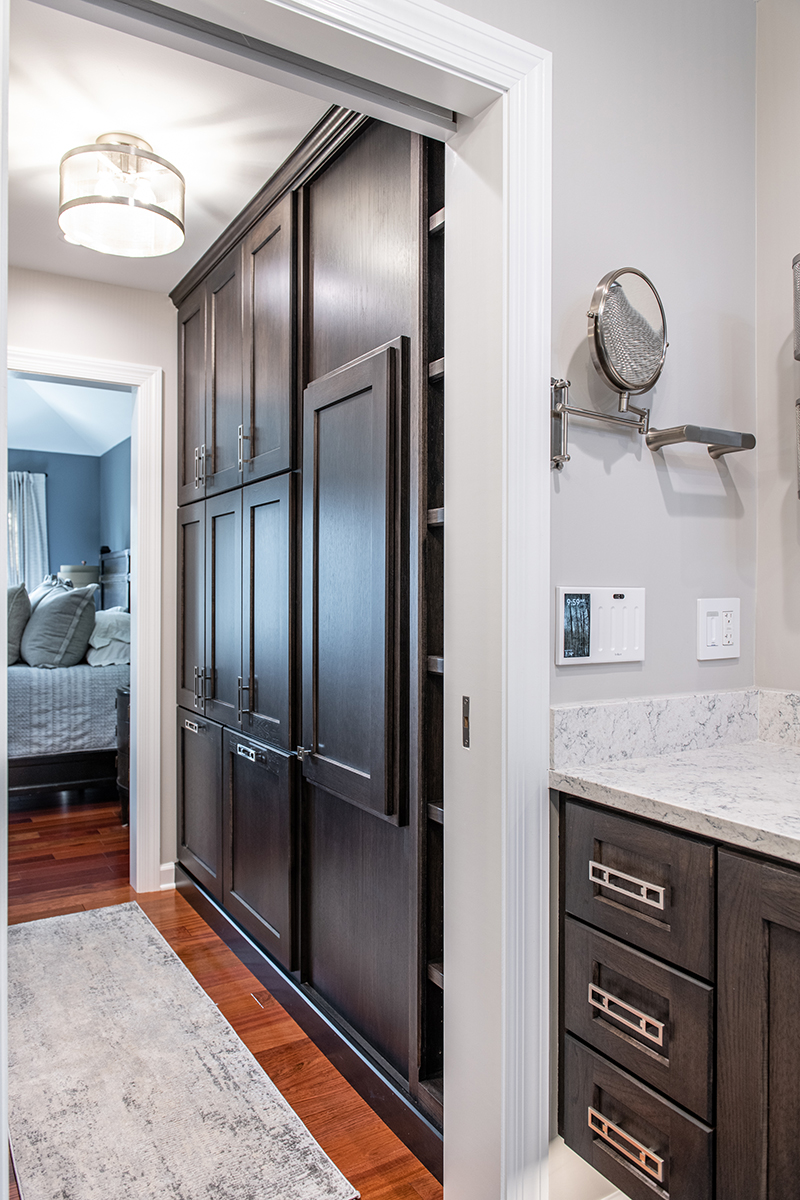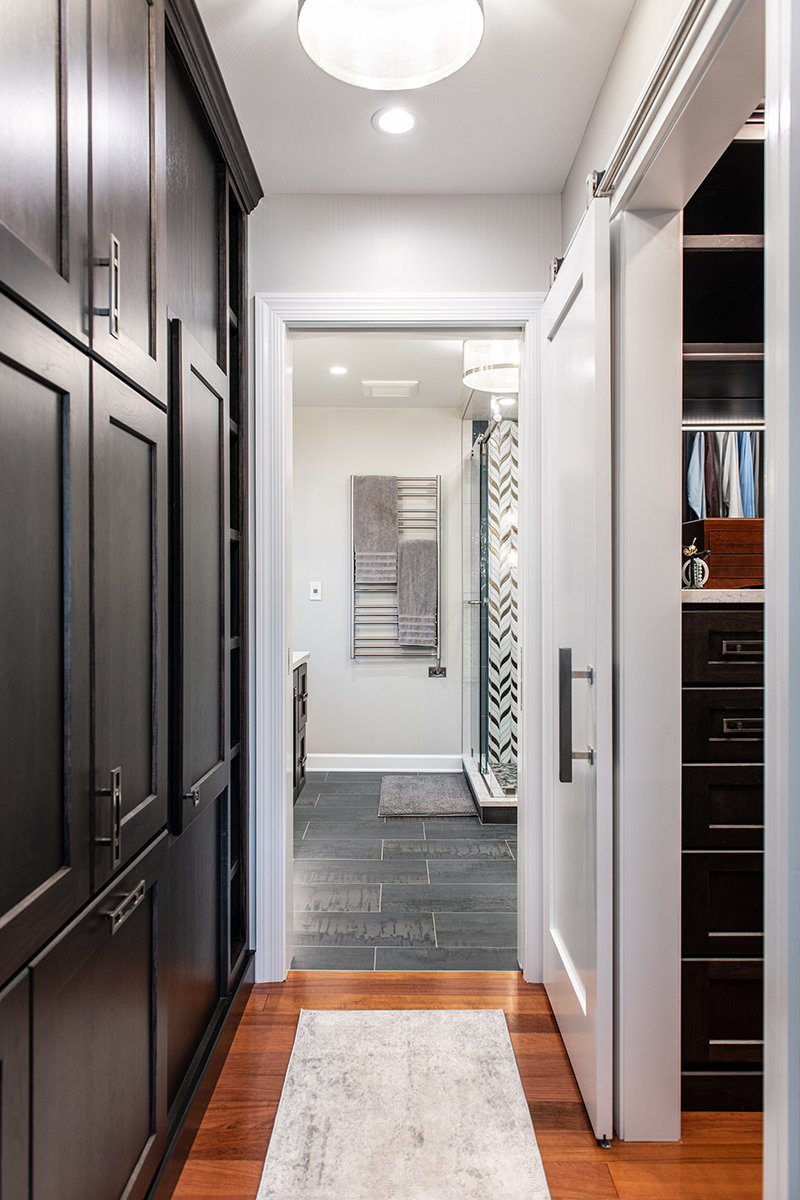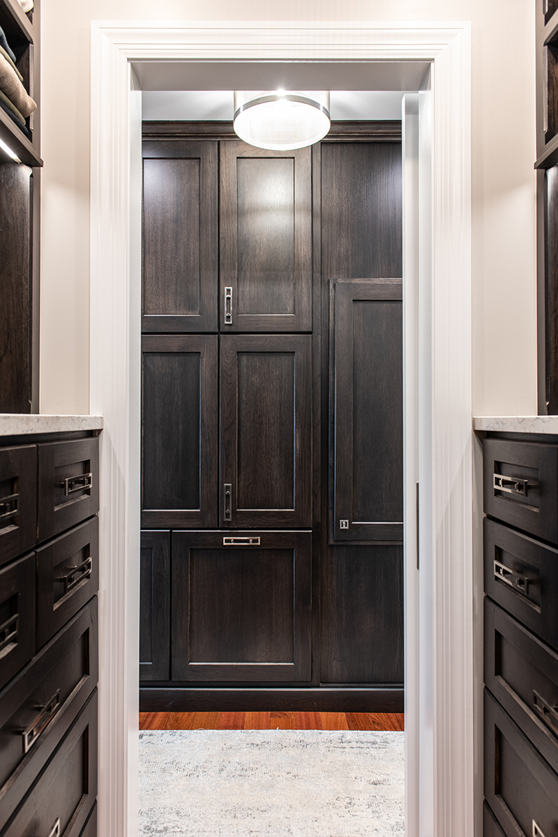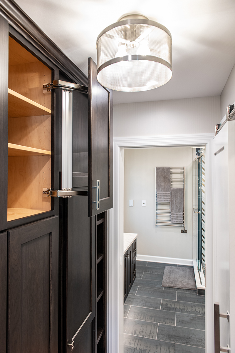 Our Grayslake primary remodel project represented the last space in the home to be renovated since the customer moved in over a decade ago. Our BDS team created a luxurious spa retreat in the bathroom with a custom designed closet that is a homeowner’s dream!. A dream space to get ready for the day was created with dual wall hung vanities complete with plenty of lighting not just above the counter but with night lighting underneath as well. This spa shower includes a completely customizable and voice controlled lighting and plumbing system with multiple spray fixtures. Our homeowners continued the show stopping design with heated floors, a towel warmer, and a speaker system that will make you never want to leave the bathroom again. A fully custom closet was designed to provide these homeowners with ample drawer space, racks, and cabinets for their clothes.