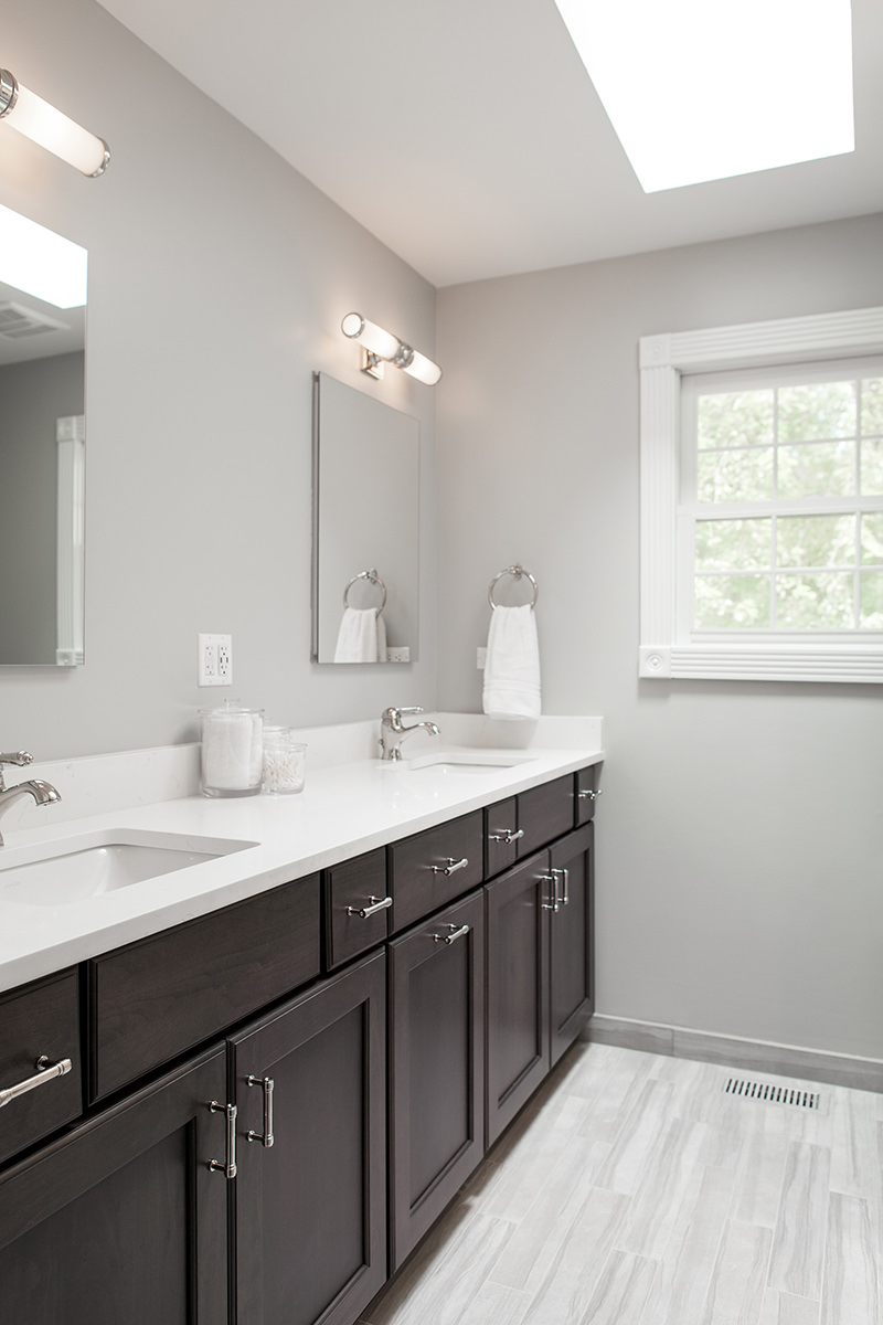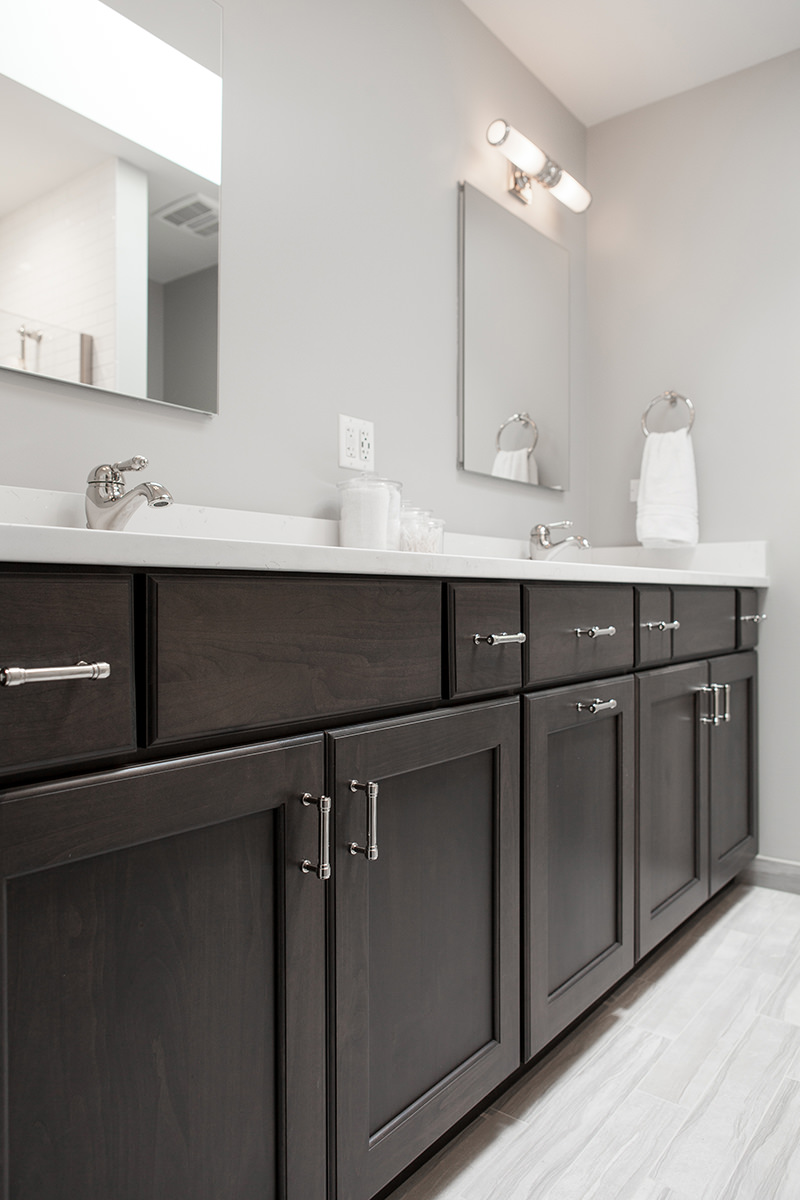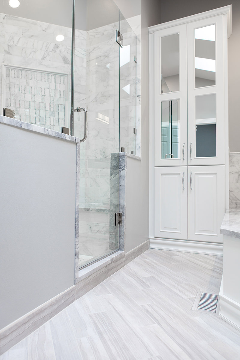 Over the course of 2 years and in 2 separate phases, our team at BDS had the pleasure of working on the Timber Creek Remodel in Libertyville. We were able to accomplish an extensive remodel of the primary bedroom suite, hall bath, and stairs, and then later took on the complete remodel of the kitchen, mudroom, and floors. Phase one of this project involved completely remodeling the primary bedroom suite as well as the hall bath and finishing with the stairs. Paint, new carpet, and a high end organization system allowed for a complete primary room transformation. Custom vanity, sleek quartzite countertops, and headed marble flooring are just a few features that allowed for this updated spa retreat. The hall bath was updated to match the style of the primary bath. We added a stained double vanity and white quartz countertops. To complete the first phase, our team replaced a worn out runner on the stairs with a fresh classic gray runner.