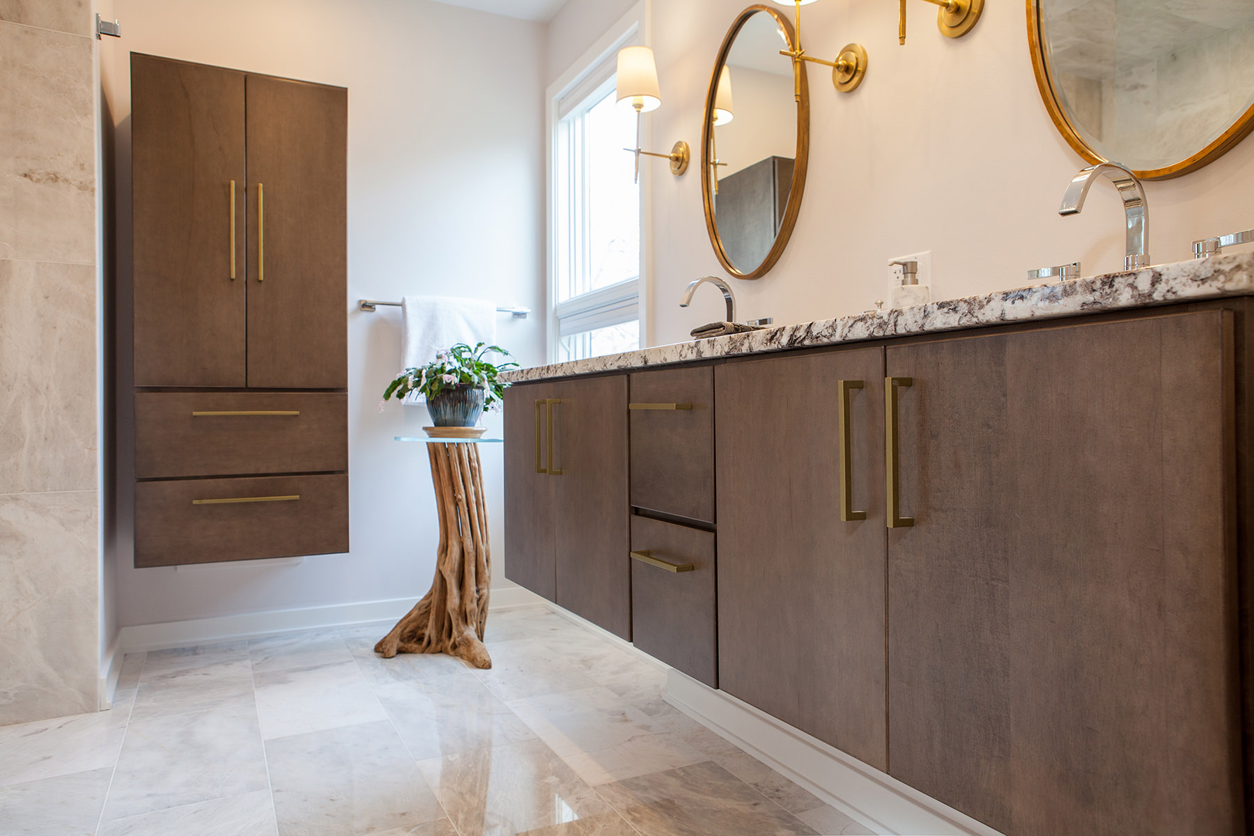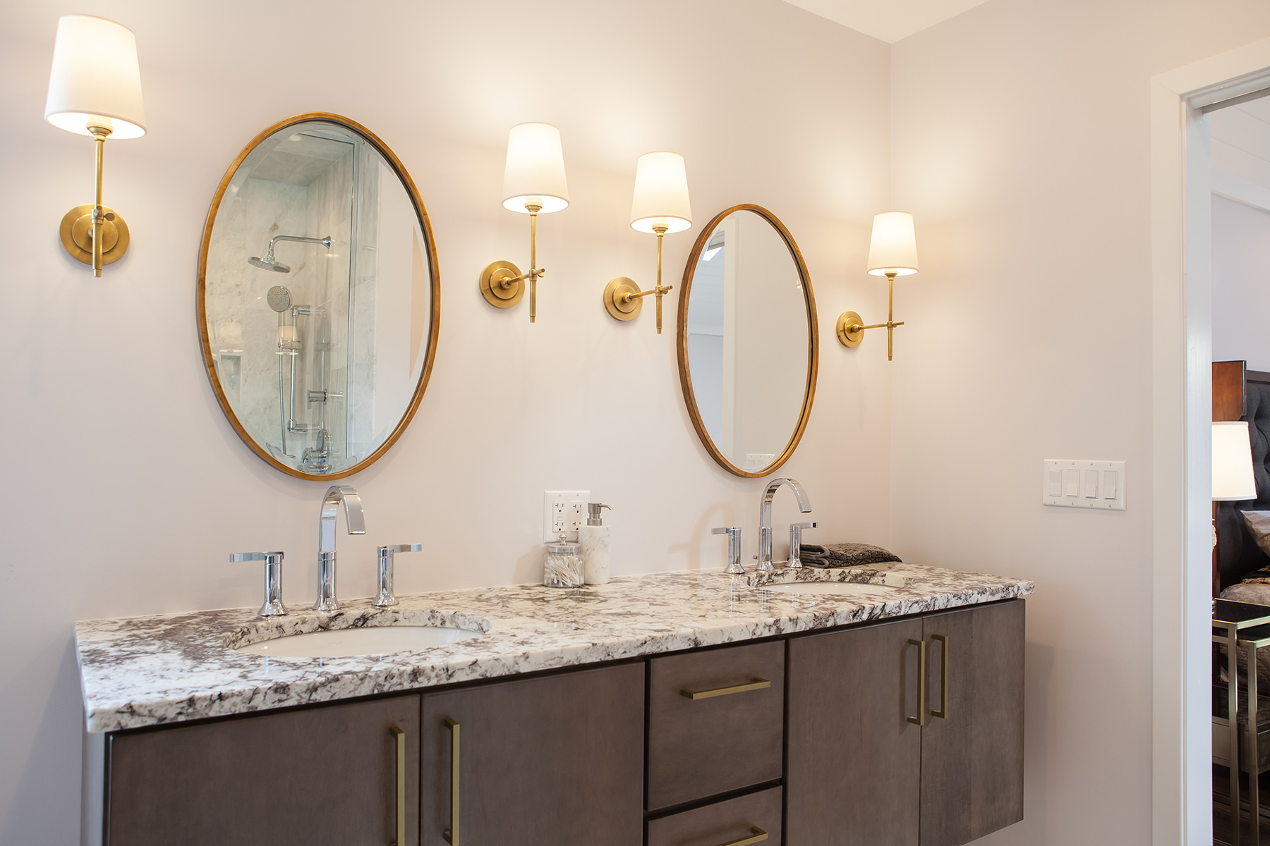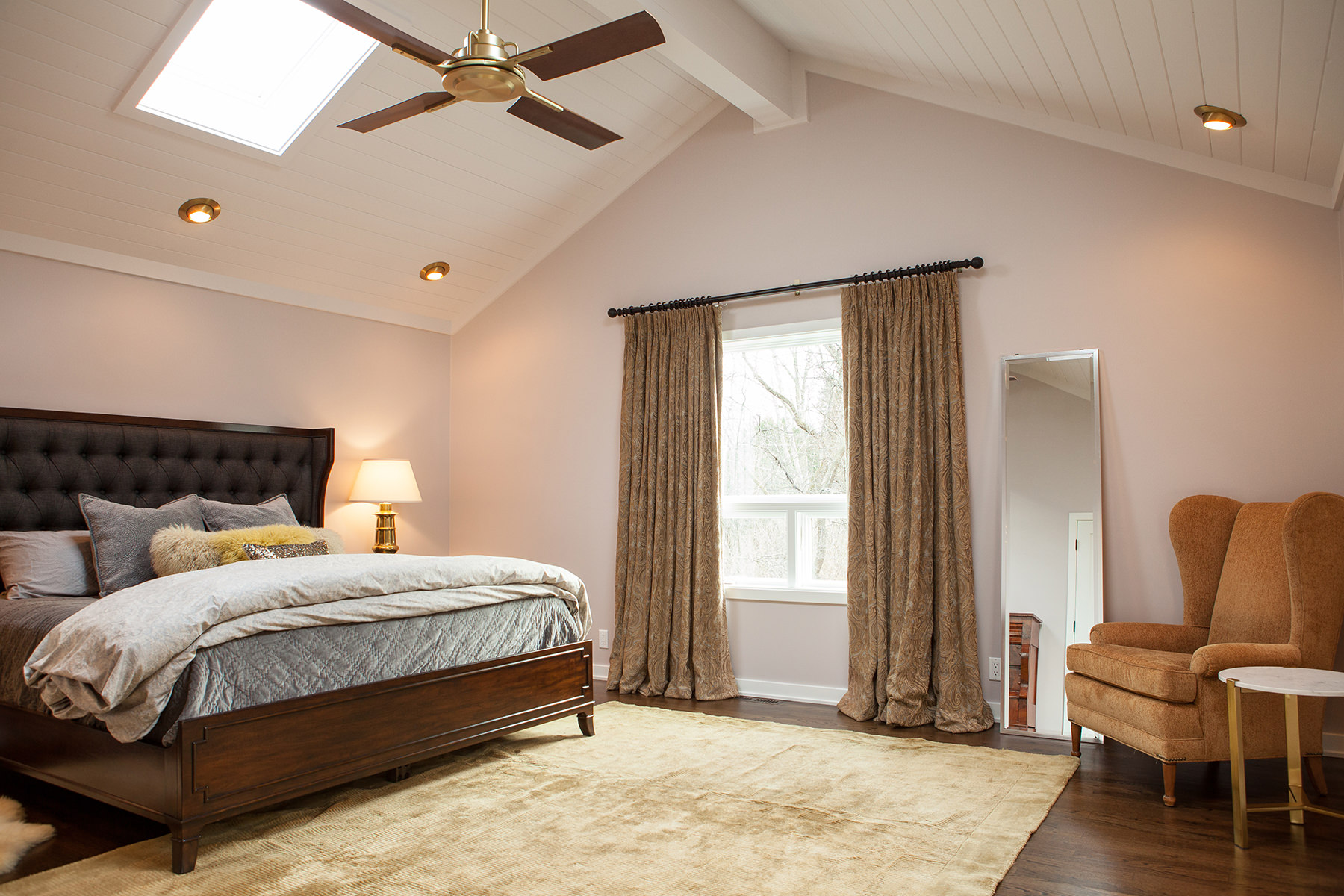 The BDS design for this remodel of the primary suite in Lake Bluff was coordinated to update the interior and exterior style of the home. The siding, paint, lighting and windows were all updated on the exterior. The primary suite and bathroom were remodeled with high end finishes and material. An open airy design flows from bedroom to bathroom. Rich warm wood cabinets provide warmth while the light paint and tile keeps the space feeling bright. This primary suite is a space that you long to come home and relax in at the end of the day.
