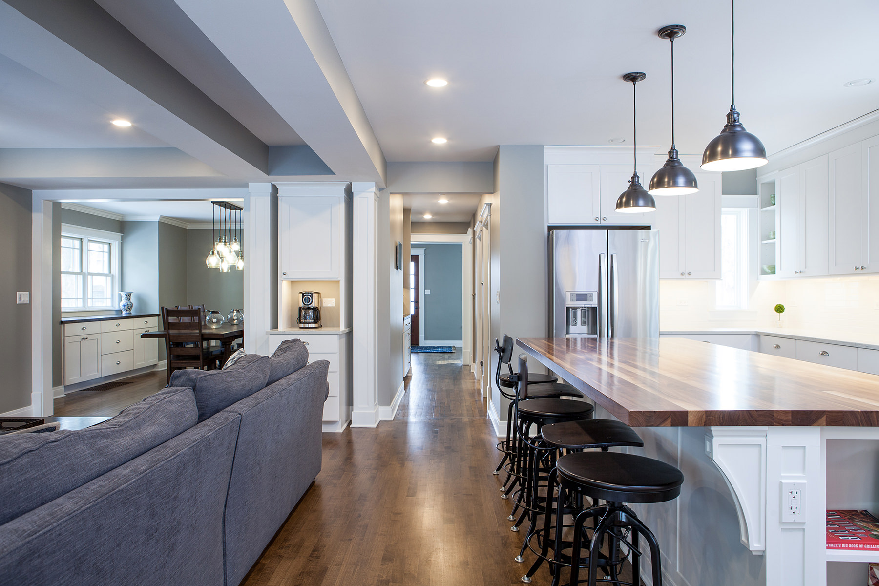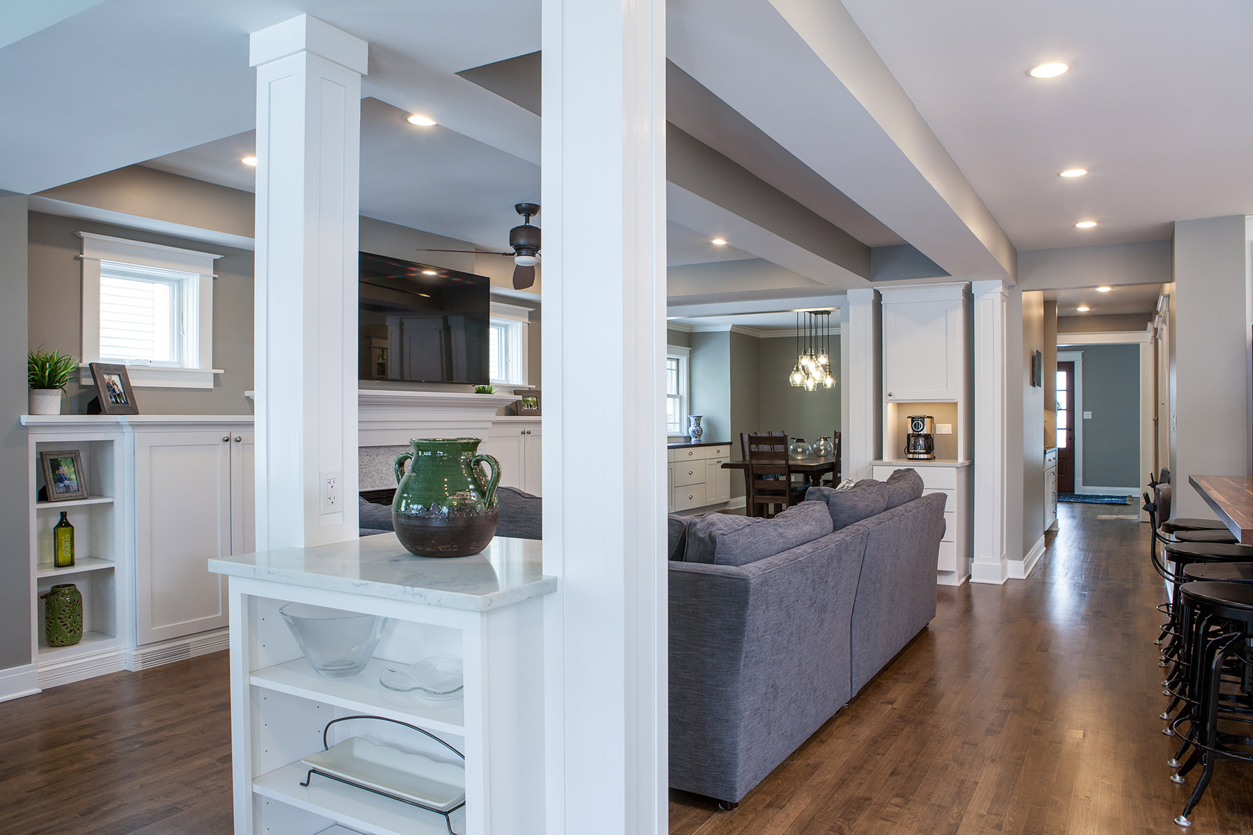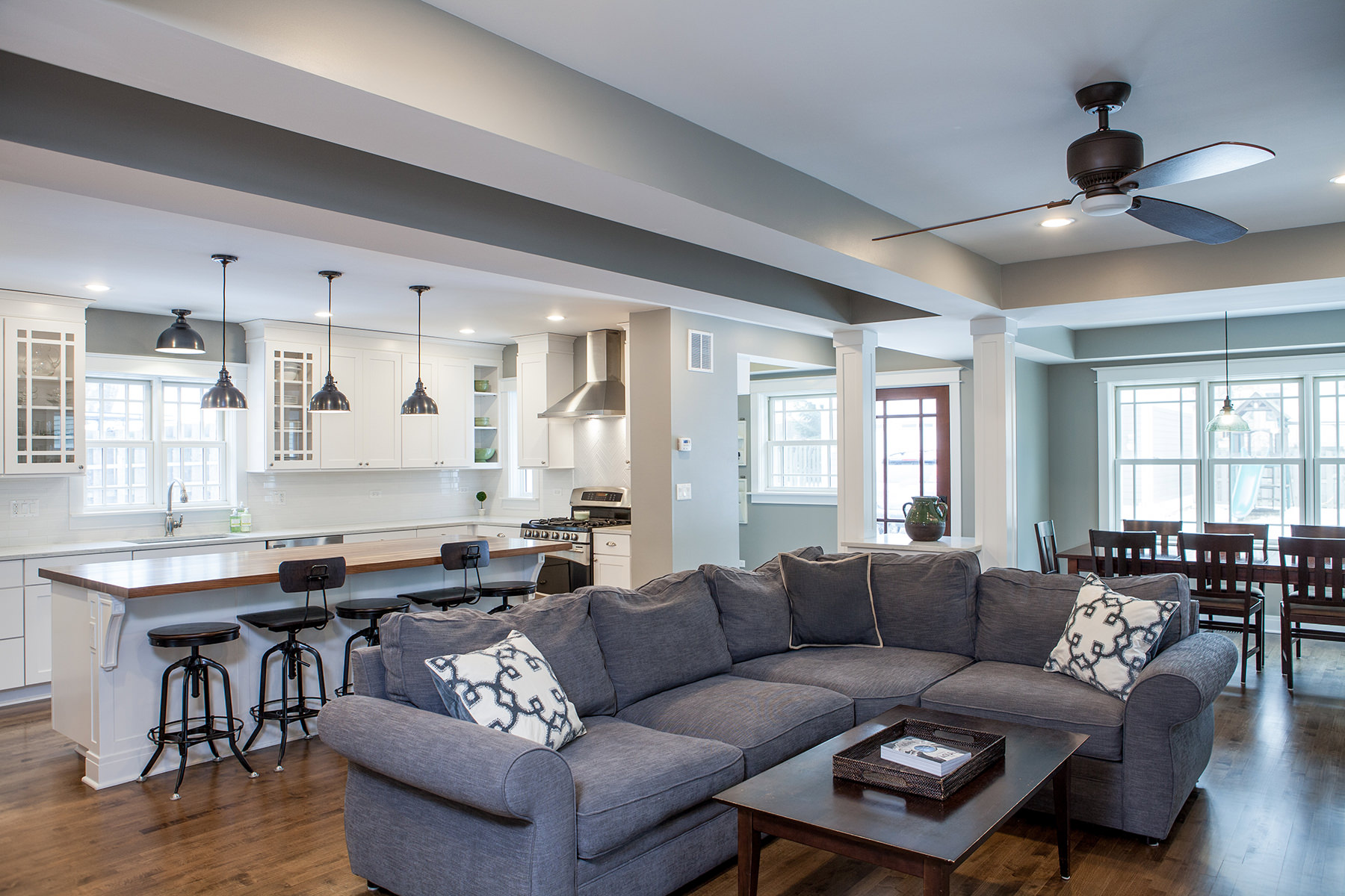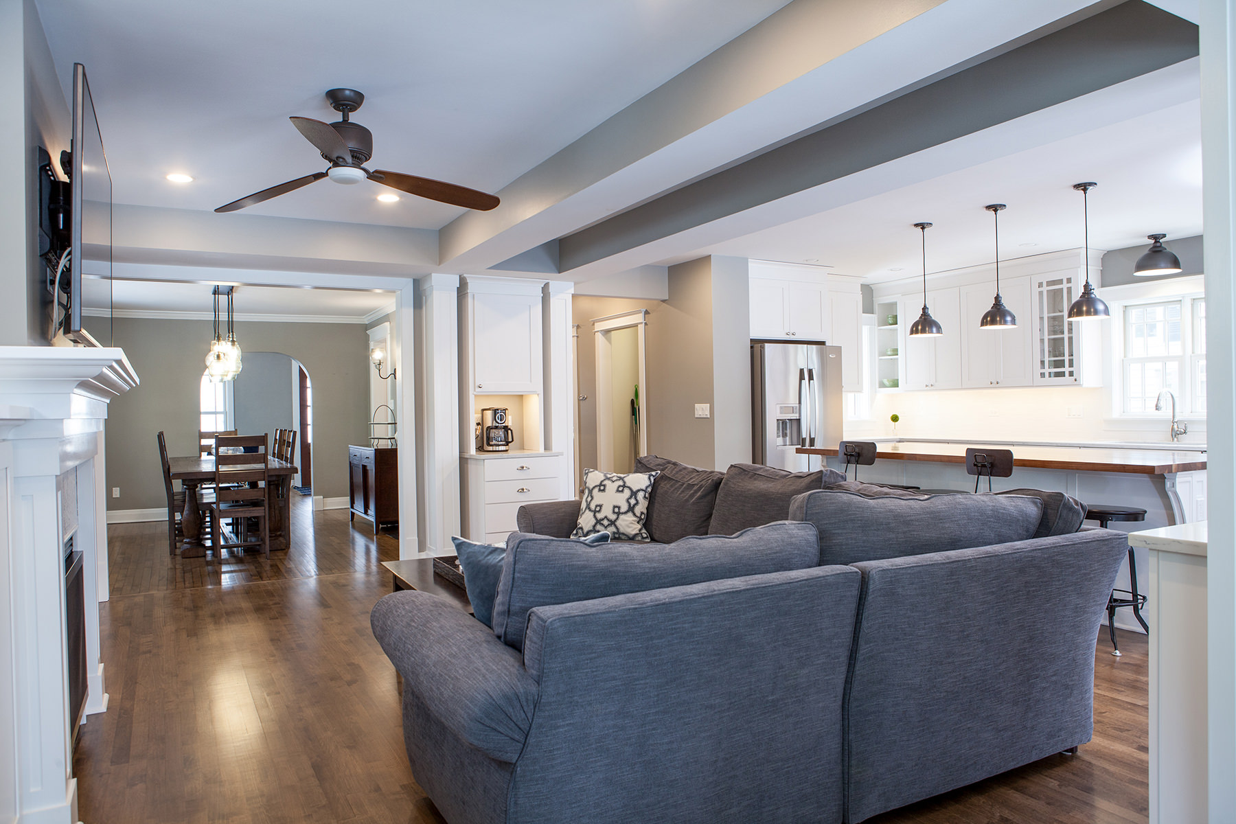 Our BDS team took this historic 1910 arts and crafts movement home, and not only restored the historical home while at the same time making it functional and fresh. Perhaps the most spectacular and substantive change BDS brought to his historic home is its two-story building addition that nearly doubles the original home’s square footage and blends seamlessly with the original design. While the front of the house was altered to present a more modern and inviting face, the larger change occurred to the back of the house and the garage that were both extended to accommodate the family’s needs. The windows, trim work, front paneling, and roof lines of the home, on the other hand, were all built in a style reflective of the original. The open-concept kitchen and family room keep the home from feeling too narrow while the design elements reflect the arts and crafts style. Even elements of the home that have been thoroughly modernized, like the upstairs master bedroom, have been done so in a manner that pays homage to the home’s inclination toward clean lines and decluttered spaces while at the same time showing beauty in creative architectural lines.