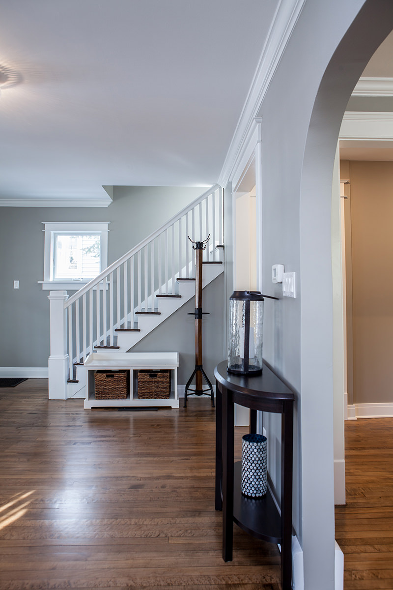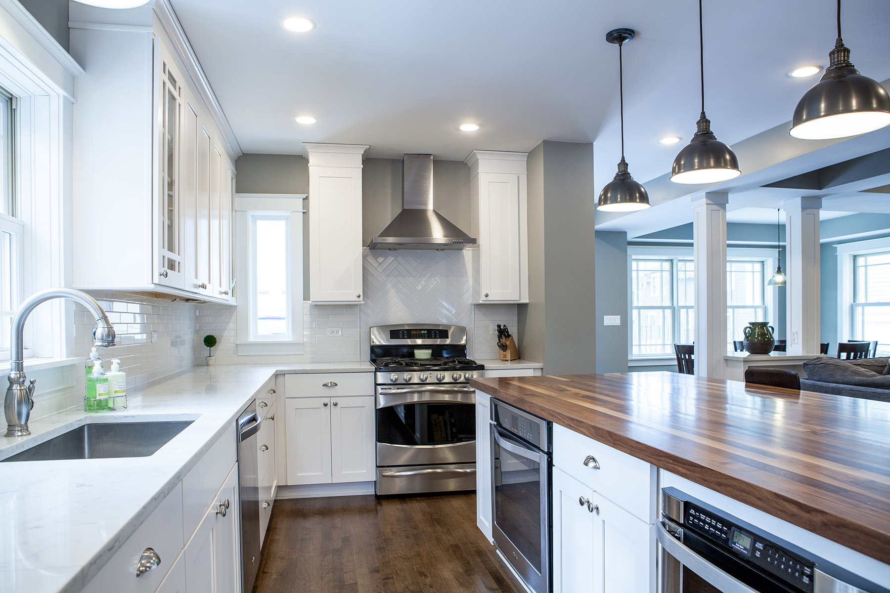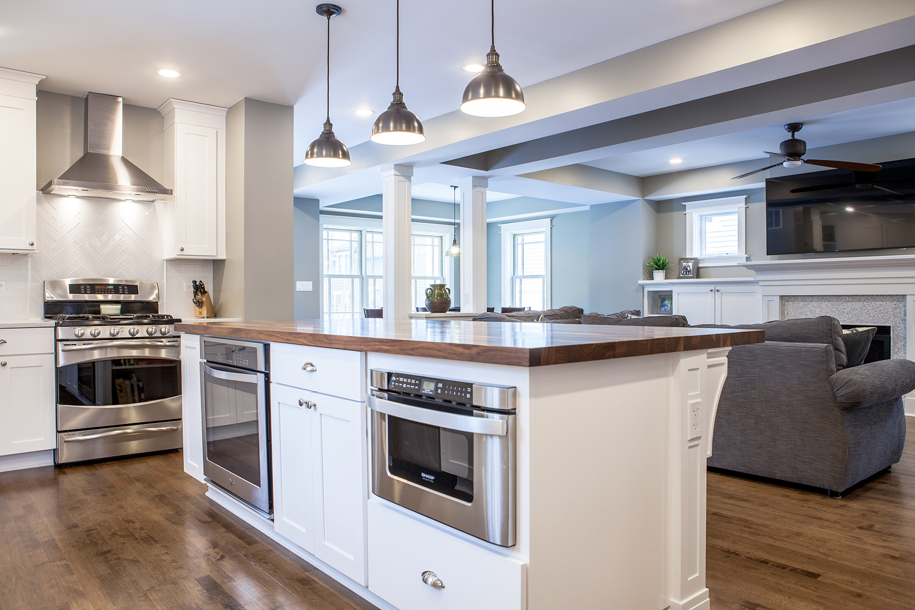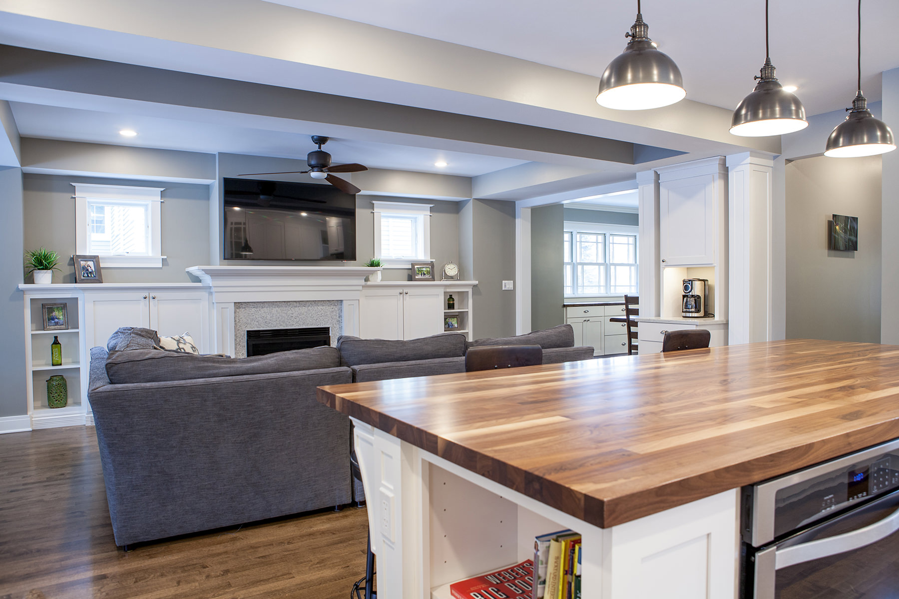 Our BDS team took this historic 1910 arts and crafts movement home, and not only restored the historical home while at the same time making it functional and fresh. Perhaps the most spectacular and substantive change BDS brought to his historic home is its two-story building addition that nearly doubles the original home’s square footage and blends seamlessly with the original design. While the front of the house was altered to present a more modern and inviting face, the larger change occurred to the back of the house and the garage that were both extended to accommodate the family’s needs. The windows, trim work, front paneling, and roof lines of the home, on the other hand, were all built in a style reflective of the original. The open-concept kitchen and family room keep the home from feeling too narrow while the design elements reflect the arts and crafts style. Even elements of the home that have been thoroughly modernized, like the upstairs master bedroom, have been done so in a manner that pays homage to the home’s inclination toward clean lines and decluttered spaces while at the same time showing beauty in creative architectural lines.