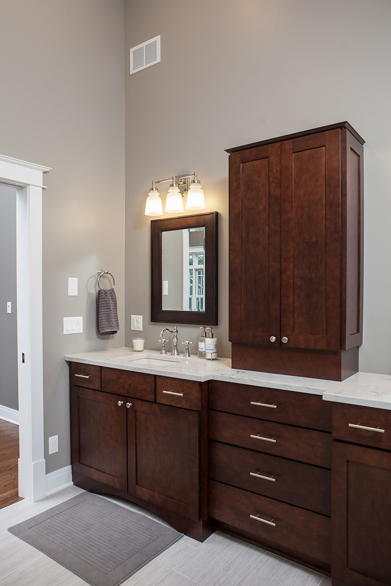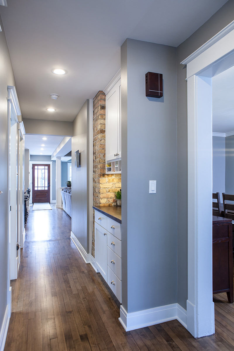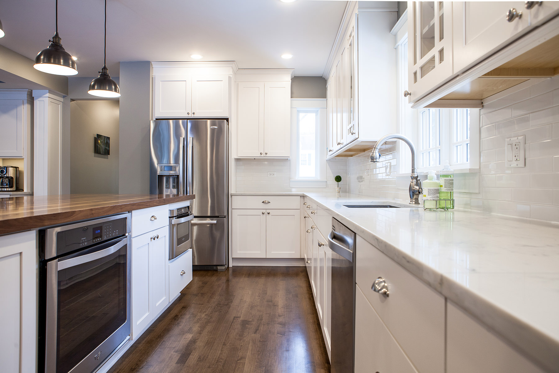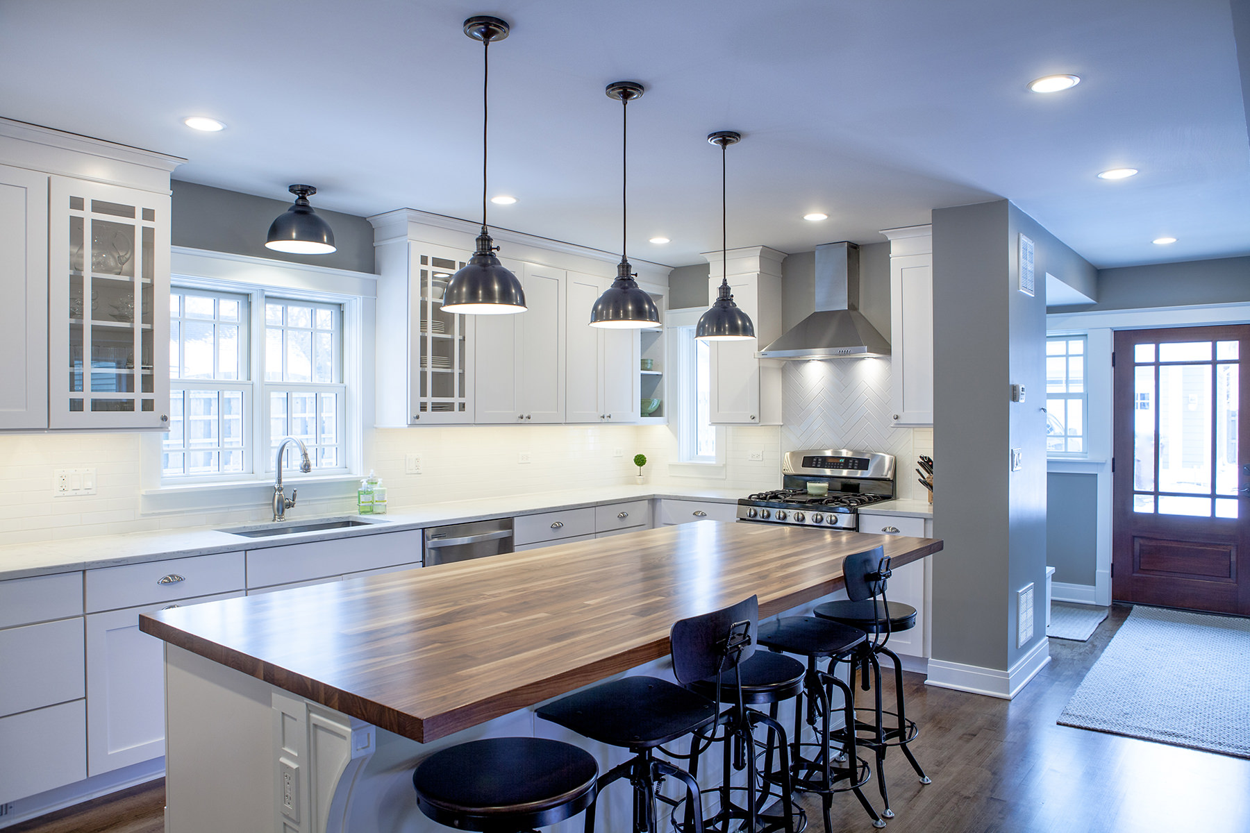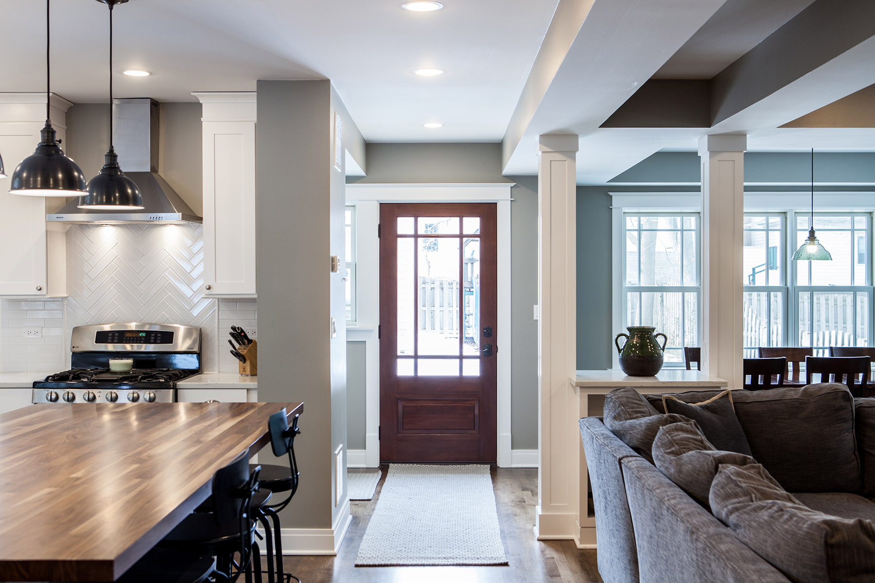 Our BDS team took this historic 1910 arts and crafts movement home, and not only restored the historical home while at the same time making it functional and fresh. Perhaps the most spectacular and substantive change BDS brought to his historic home is its two-story building addition that nearly doubles the original home’s square footage and blends seamlessly with the original design. While the front of the house was altered to present a more modern and inviting face, the larger change occurred to the back of the house and the garage that were both extended to accommodate the family’s needs. The windows, trim work, front paneling, and roof lines of the home, on the other hand, were all built in a style reflective of the original. The open-concept kitchen and family room keep the home from feeling too narrow while the design elements reflect the arts and crafts style. Even elements of the home that have been thoroughly modernized, like the upstairs master bedroom, have been done so in a manner that pays homage to the home’s inclination toward clean lines and decluttered spaces while at the same time showing beauty in creative architectural lines.